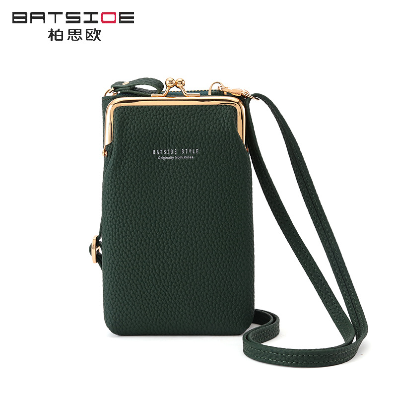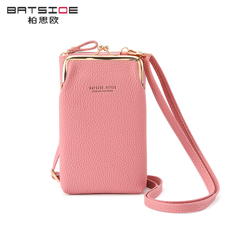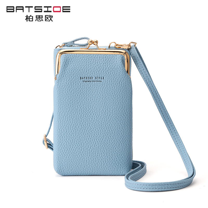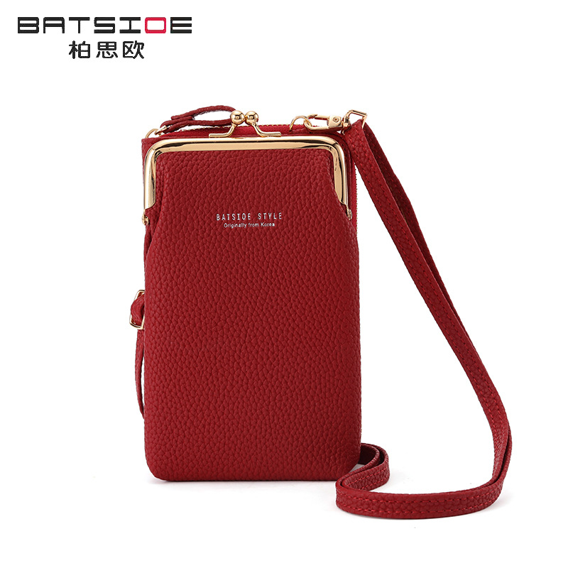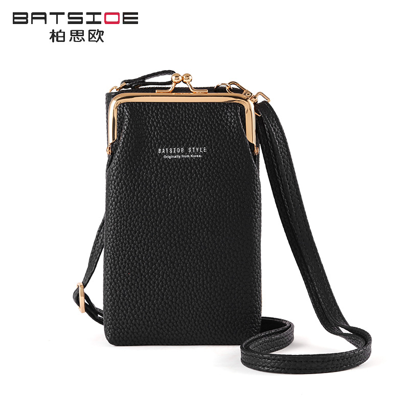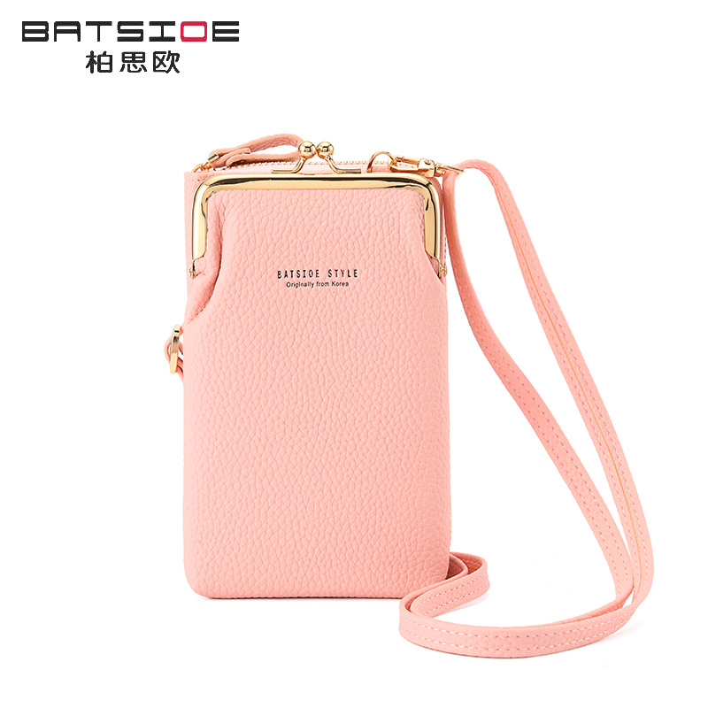 Batsioe 여성용 휴대 전화 가방 지갑 한국식 대용량 중간 길이 유행 캐주얼 버티컬 크로스바디 백 지퍼가 달린