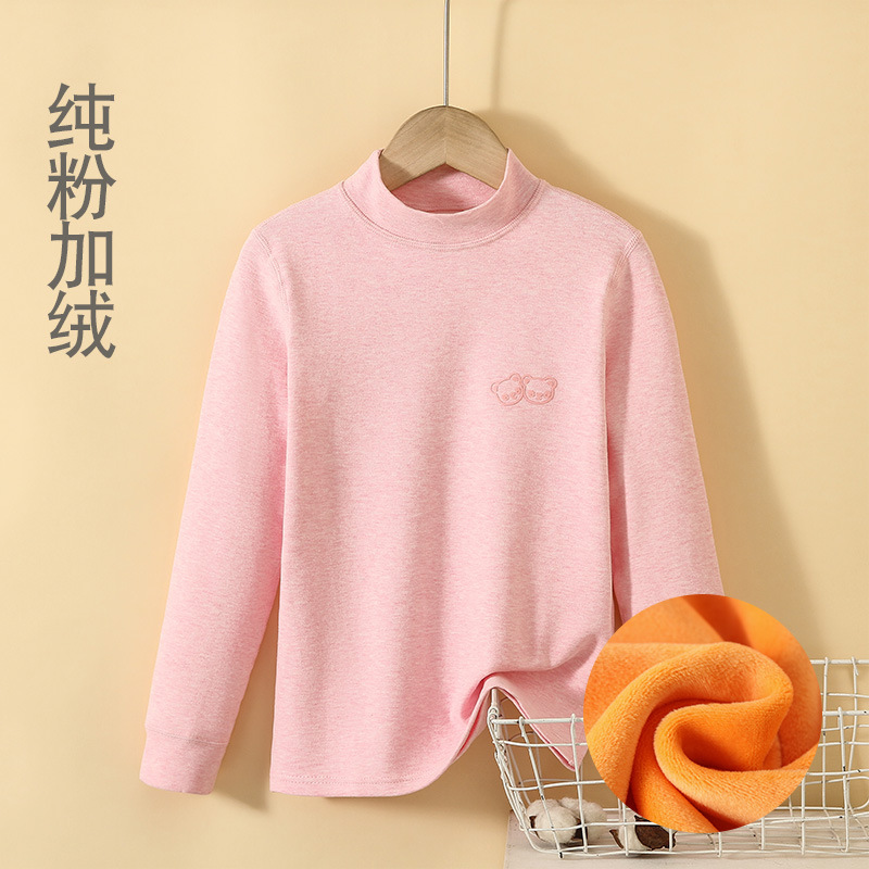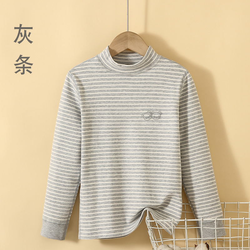 아동용 미들 칼라 탑 솔리드 컬러 하프 하이 칼라 싱글 피스 남아 양털 스트라이프 베이스 셔츠 여아 두꺼운 긴 소매 올 매치