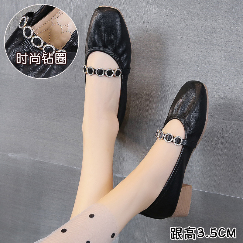 여성용 싱글 슈즈, 가죽 신발, 2026년 봄 신상, 굽이 두꺼운 여성화, 슬립온, 할머니 신발, 낮은 굽, 캐주얼, 다용도