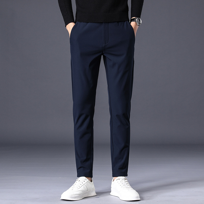 봄 캐주얼 바지 남자의 새로운 비즈니스 바지 슬림 핏 스트레이트 남자 바지 staggedness 허리 바지 가을 남자의 유행 바지