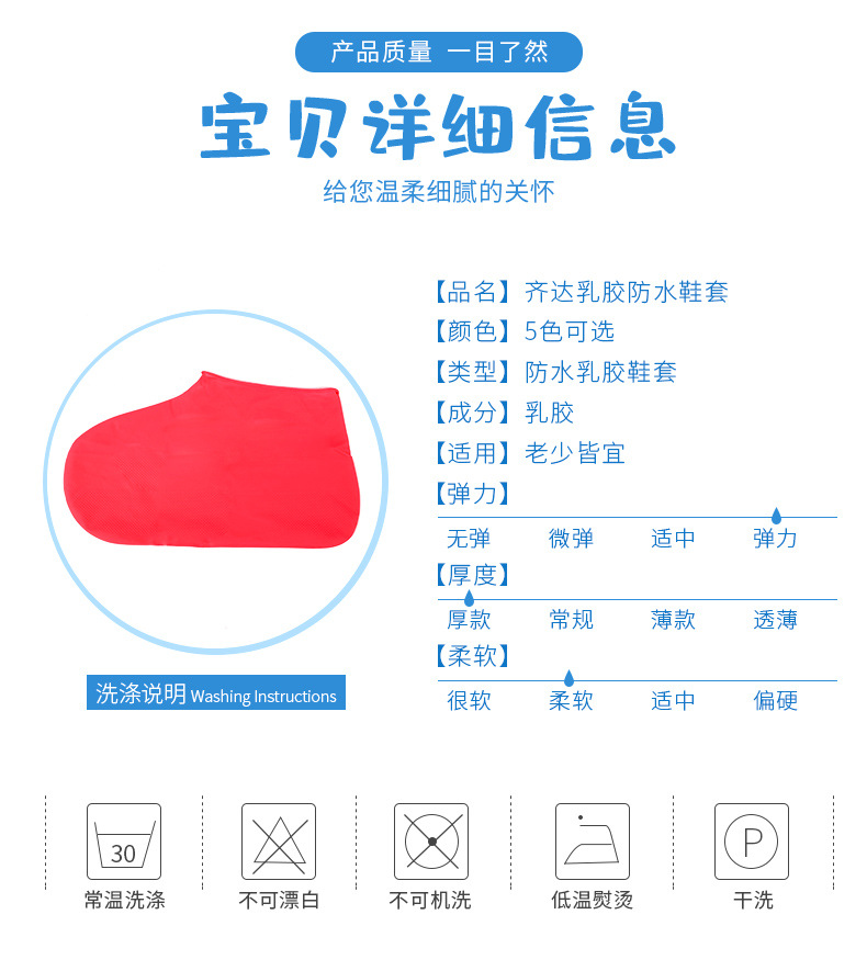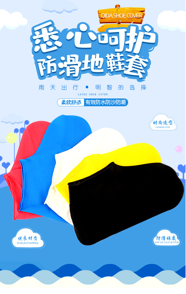 어린이용 보호용 레인슈즈 커버 제조업체 도매 방수 미끄럼 방지 두꺼운 내마모성 야외 휴대용 라텍스 레인부츠 커버
