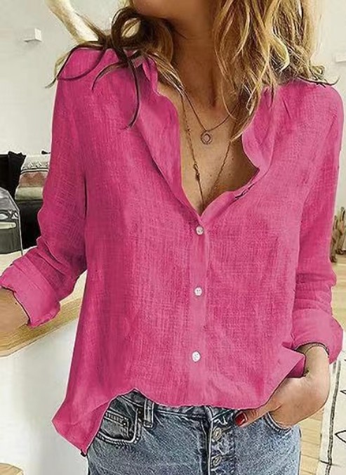 2022 봄과 가을 아시아 Ma Xun ebay 유럽과 미국의 단색 캐주얼 느슨한 긴 소매 리넨 셔츠 재고