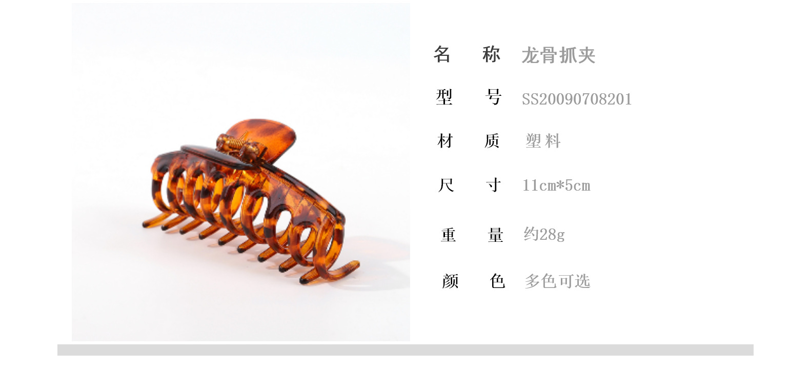 11cm 용골 젖빛 큰 그립 클립 레오파드 무늬 간단한 플라스틱 머리핀 그립 클립 머리 디스크 헤어 그립 SS-08202 뒷면