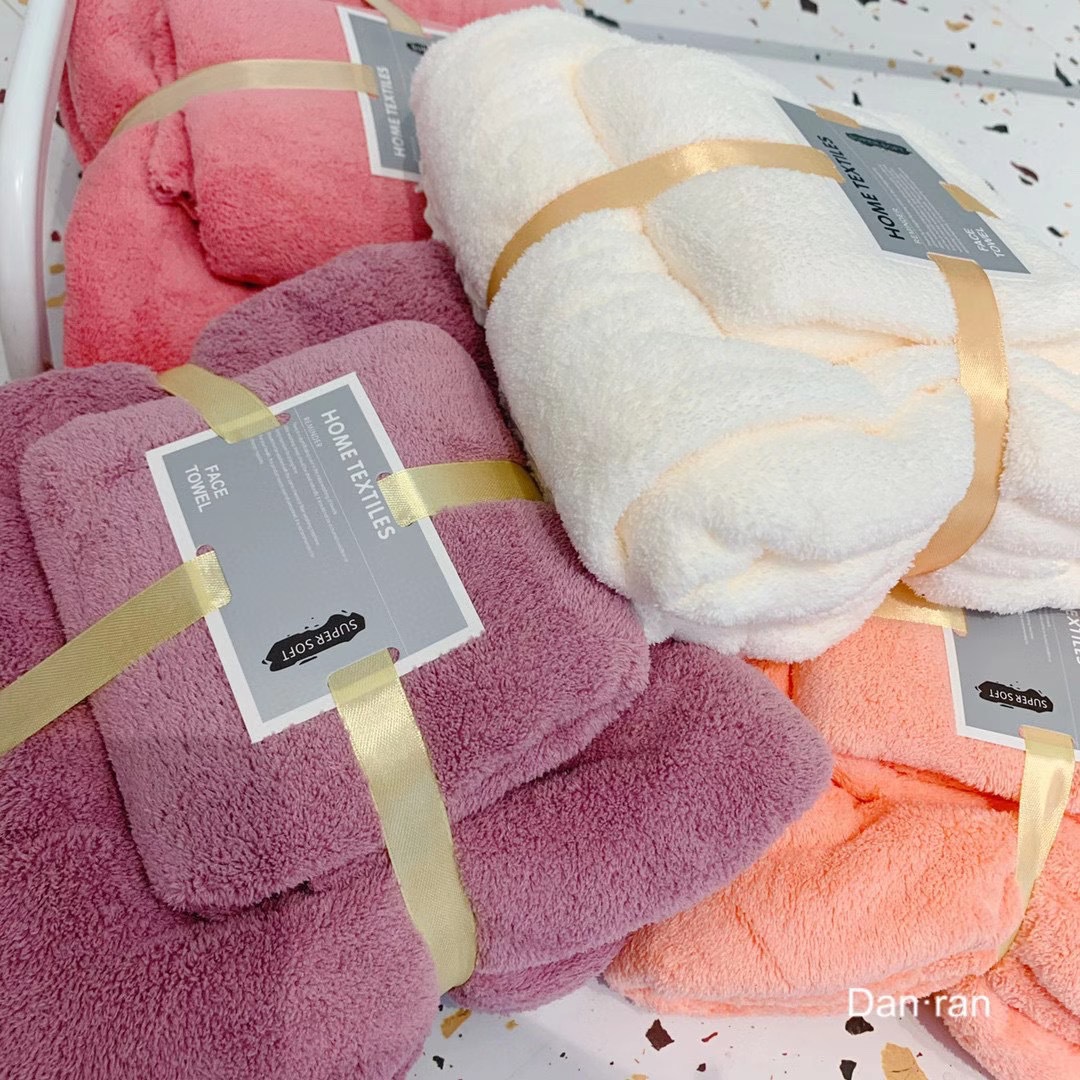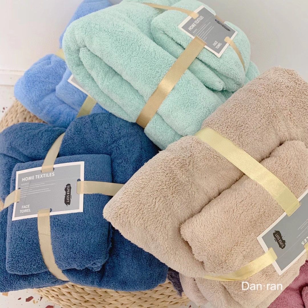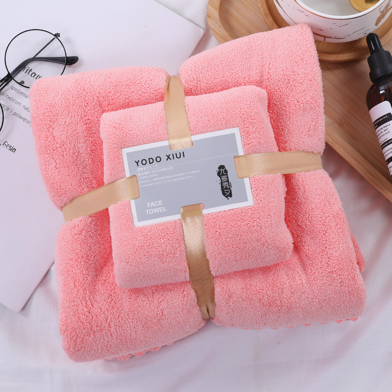 부모 자식 세트 타월 산호 벨벳 타월 목욕 타월 세트 흡수성 두꺼운 보풀 없는 선물 로고 자수 흡수성 빠른 건조스토어 가기