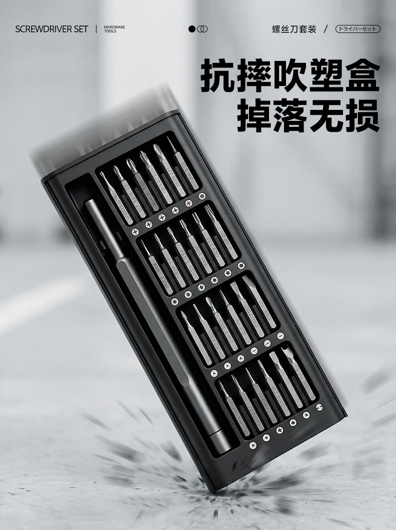 • 24-in-1 [자기 흡입] 널링 핸들이 있는 플라스틱 상자