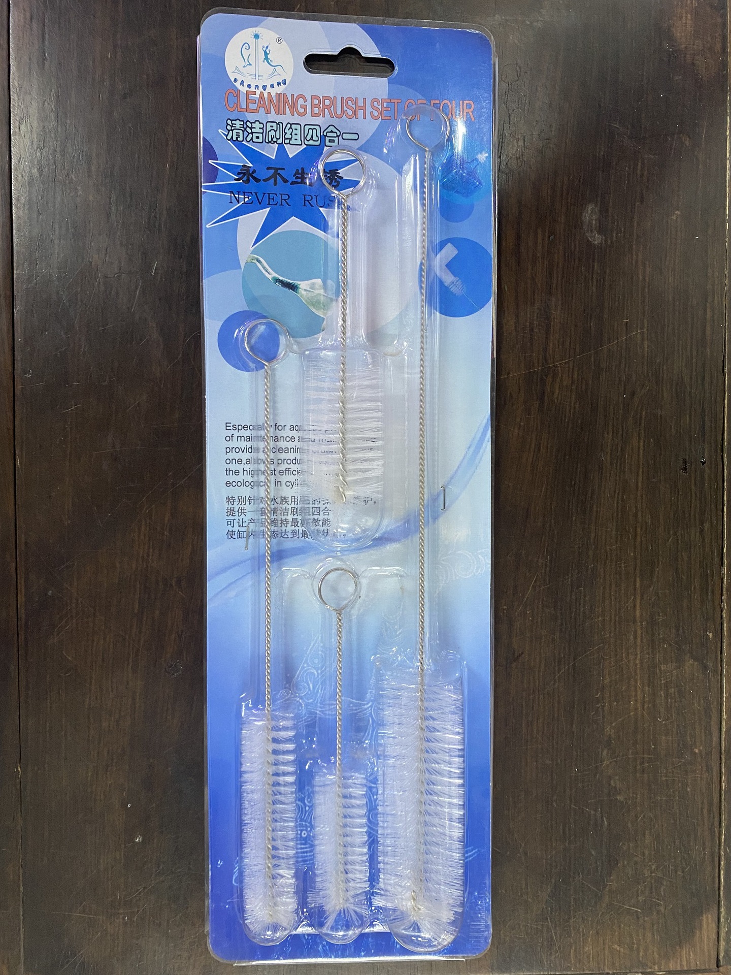생선 탱크 4 대 1 기능 브러시 입구 및 출구 유리 튜브 수도관 청소 브러시 스프링 브러시 스테인레스 스틸 브러시
