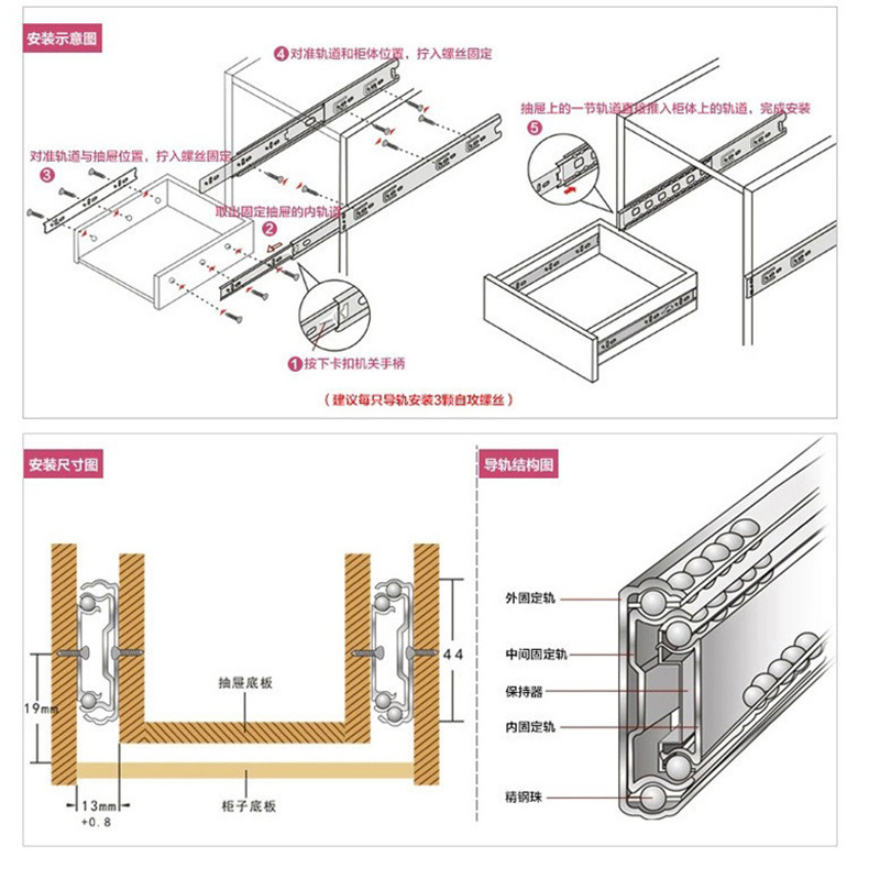 금찬성 완충 무소음 서랍 슬라이드 레일 캐비닛 옷장 3단 댐핑 레일 두꺼운 서랍 트랙 도매스토어 가기