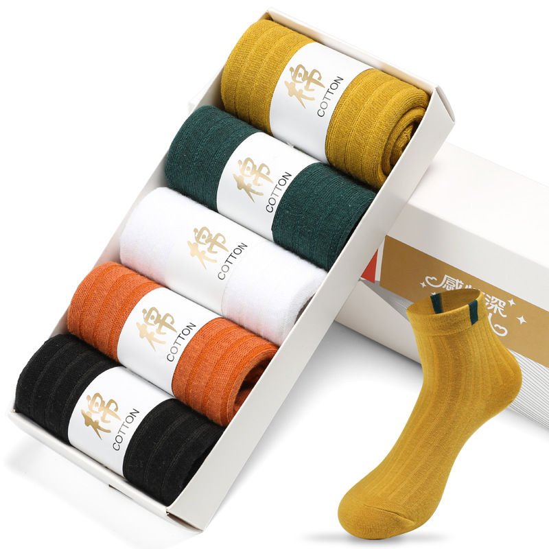 양말 남성용 종아리 양말 여성용 짧은 양말 통기성 땀 흡수 솔리드 컬러 코튼 양말 여성용 종아리 양말 가을 겨울 도매 여성용스토어 가기