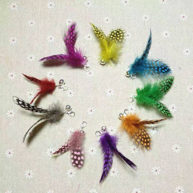 교체 헤드 컬러 도트 깃털 교체 헤드 작은 비행 곤충 고양이 애타게 스틱 봄 애완 동물 고양이 장난감 고양이 애타게 스틱