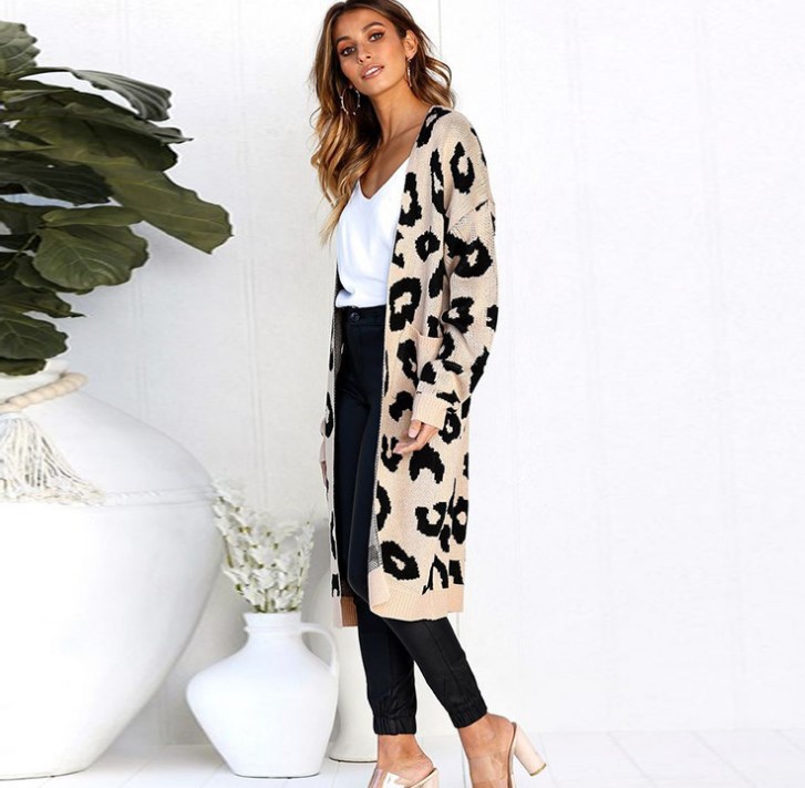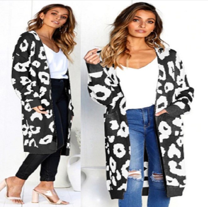 2025년 알리익스프레스 아마존 가을 겨울 컬러풀 레오파드 프린트 물방울 무늬 루즈핏 스웨터 자켓 니트 가디건 여성복