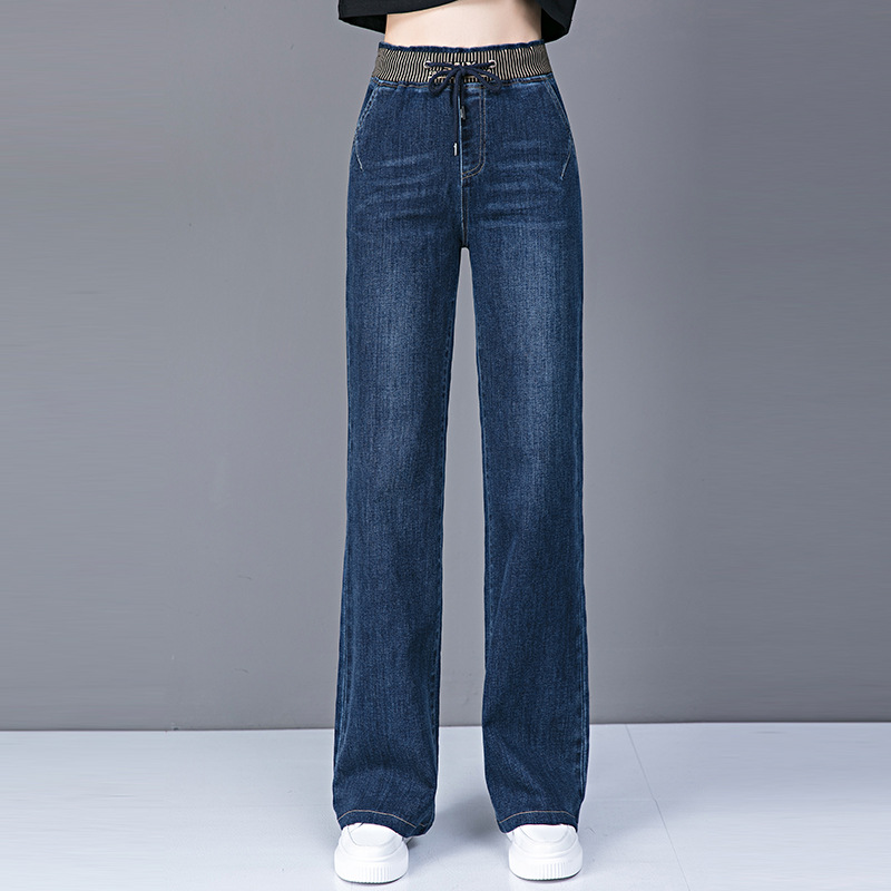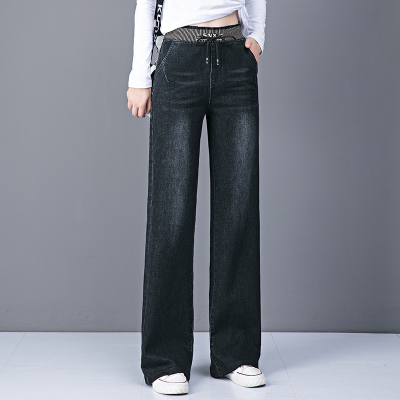 가을과 겨울 얇은 데님 와이드 레그 팬츠 여성용 바지 플러스 사이즈 하이 웨이스트 스트레이트 팬츠 청바지 걸레 바지 플레어 팬츠