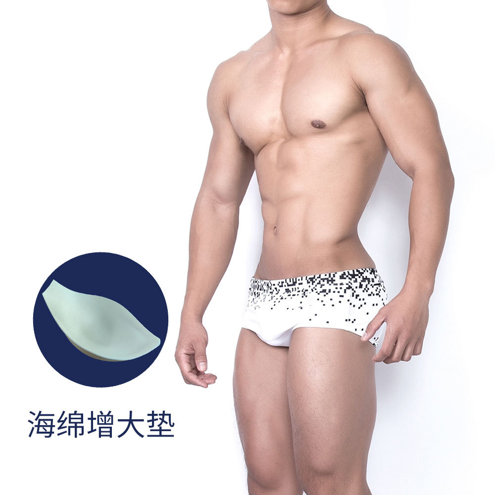 UXH 남성용 복서 수영 트렁크 컵 크기 대형 3 차원 포켓 두꺼운 더블 레이어 눈부심 방지 유행 인쇄 수영복