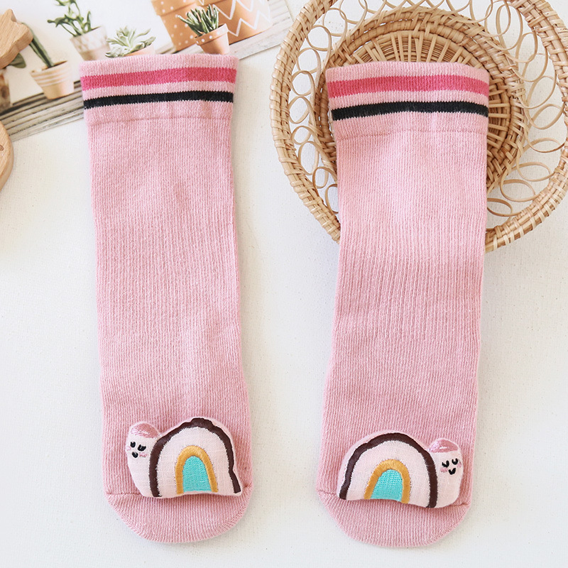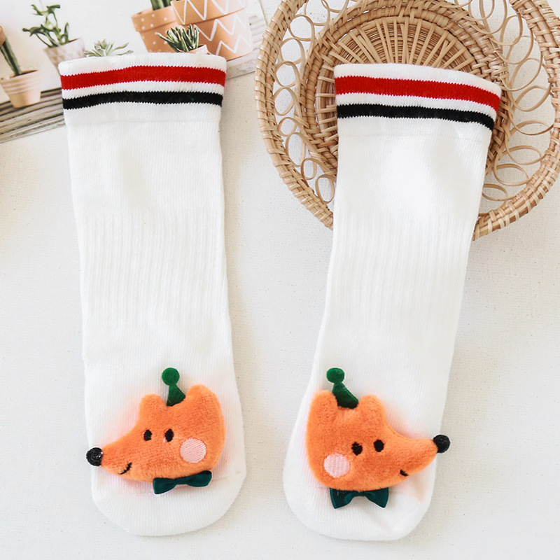 가을과 겨울 빗질면 아기 양말 신생아 아기 하이 롱 튜브 무릎 양말 만화 미끄럼 방지 바닥 양말 도매