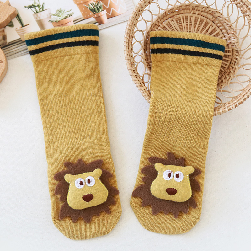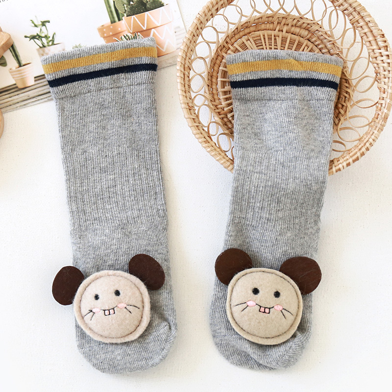 가을과 겨울 빗질면 아기 양말 신생아 아기 하이 롱 튜브 무릎 양말 만화 미끄럼 방지 바닥 양말 도매스토어 가기