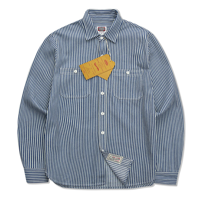 무거운 작업복 셔츠 남성용 긴 소매 중립 빈티지 ameikaji 패션 브랜드 순수한면 미국 복고풍 수직 줄무늬 셔츠스토어 가기