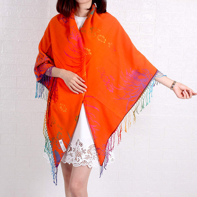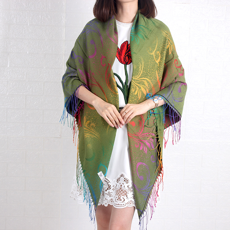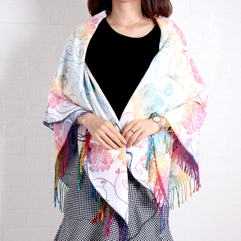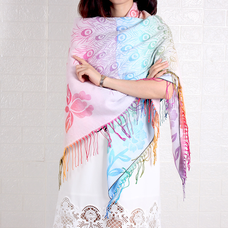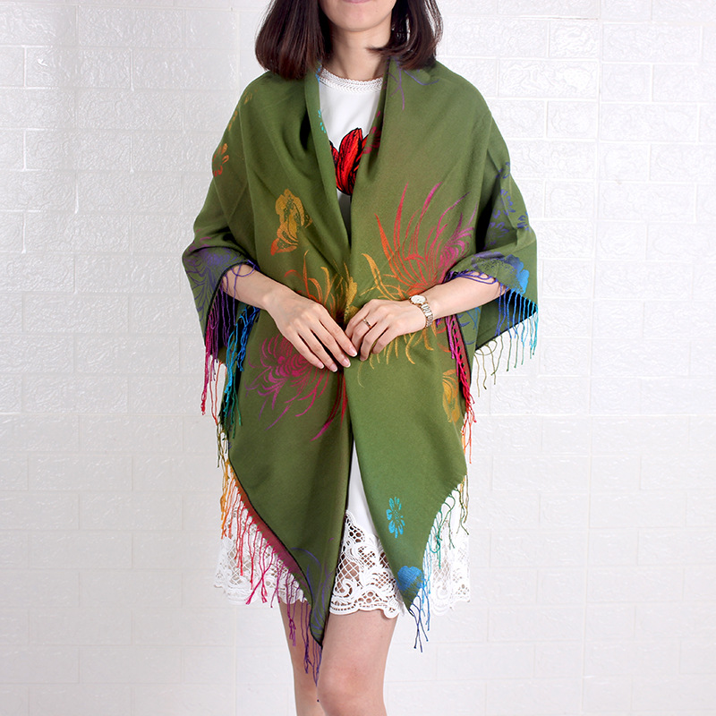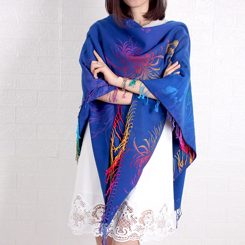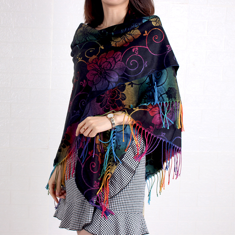 새로운 복고풍 민족 두꺼운 따뜻한 망토 꽃 스카프 캐시미어 숄 이중 목적 공작 모란 대형 광장스토어 가기
