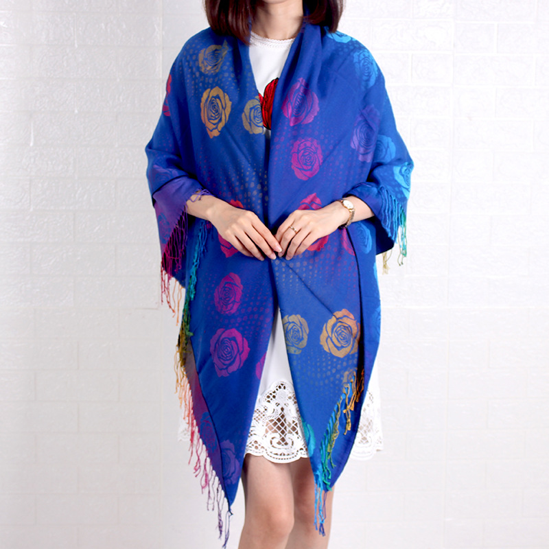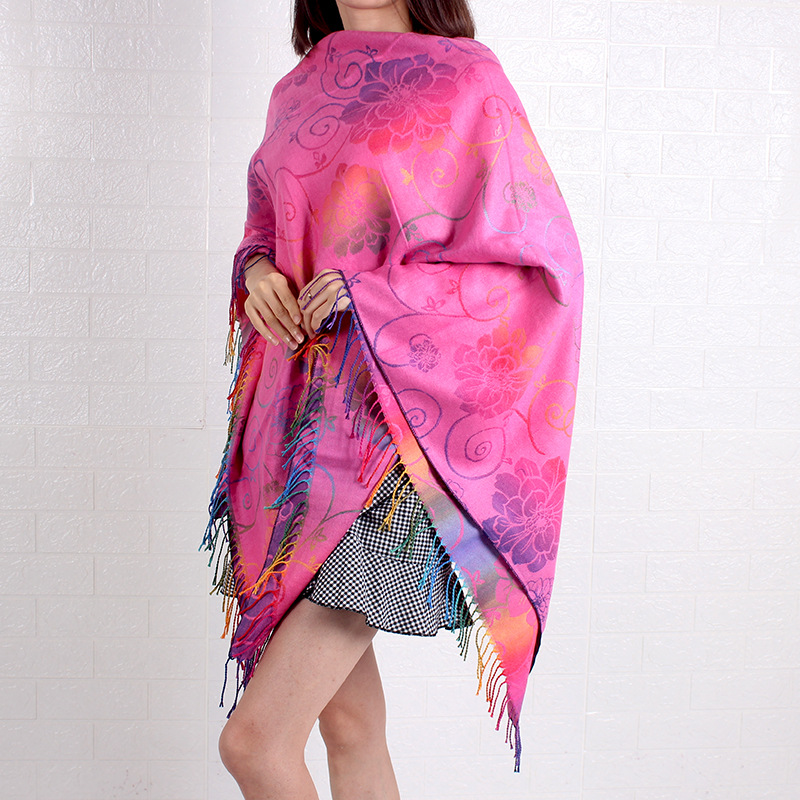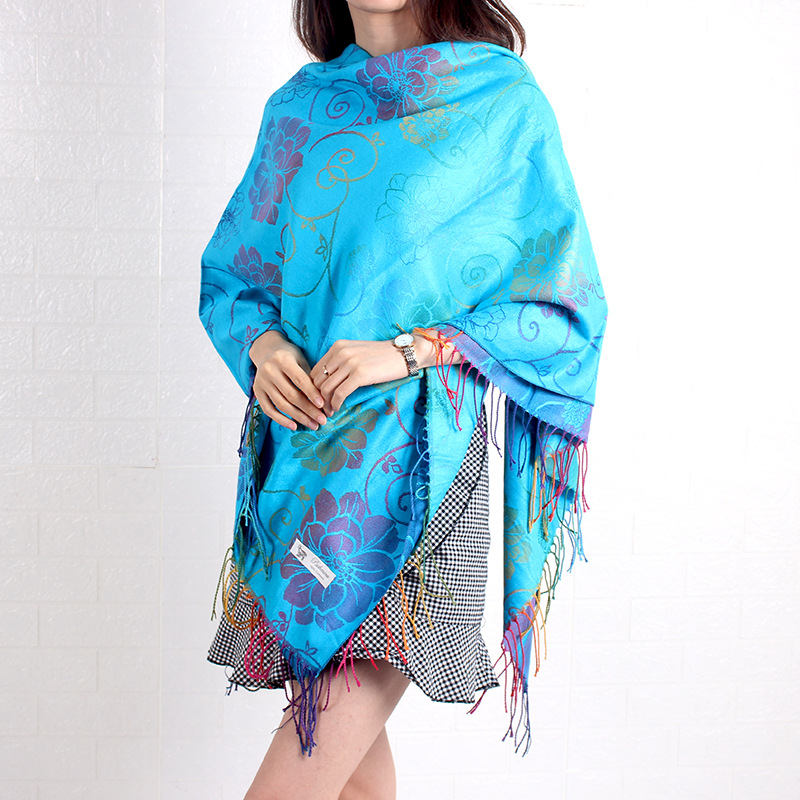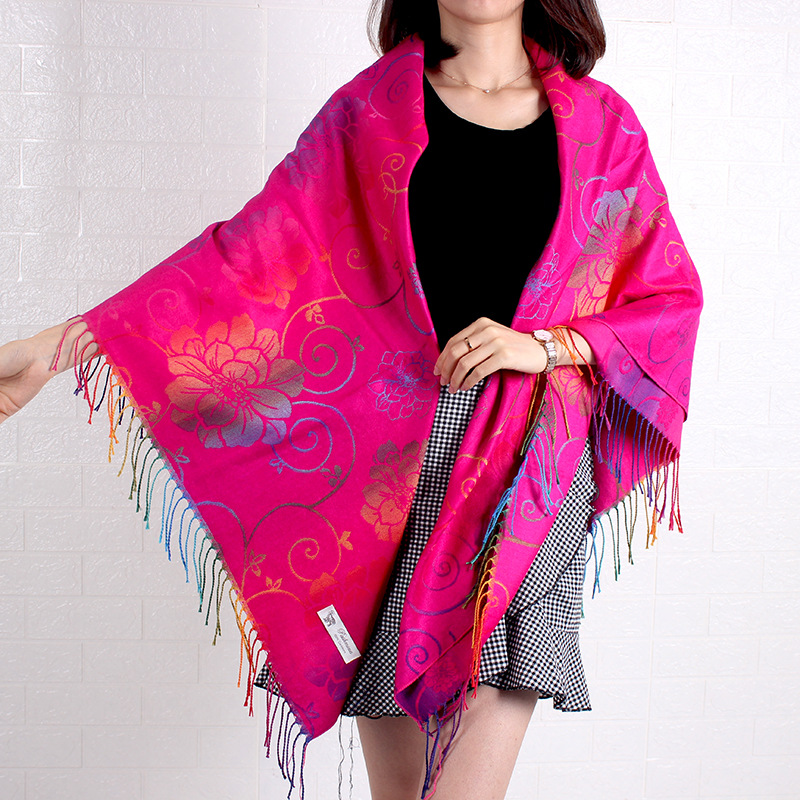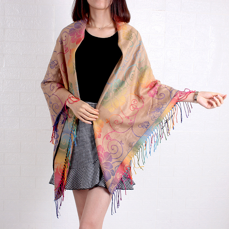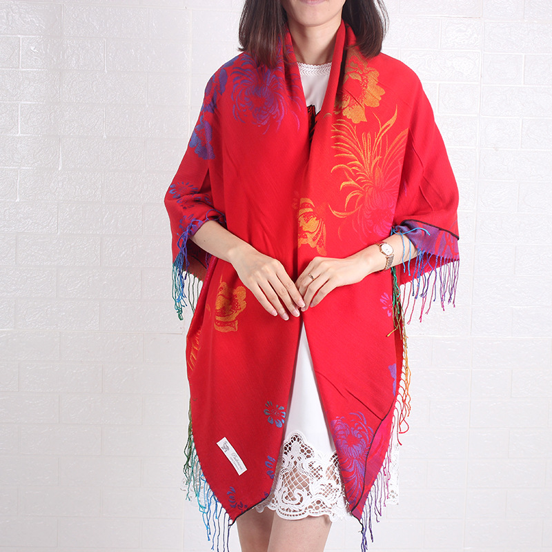새로운 복고풍 민족 두꺼운 따뜻한 망토 꽃 스카프 캐시미어 숄 이중 목적 공작 모란 대형 광장스토어 가기