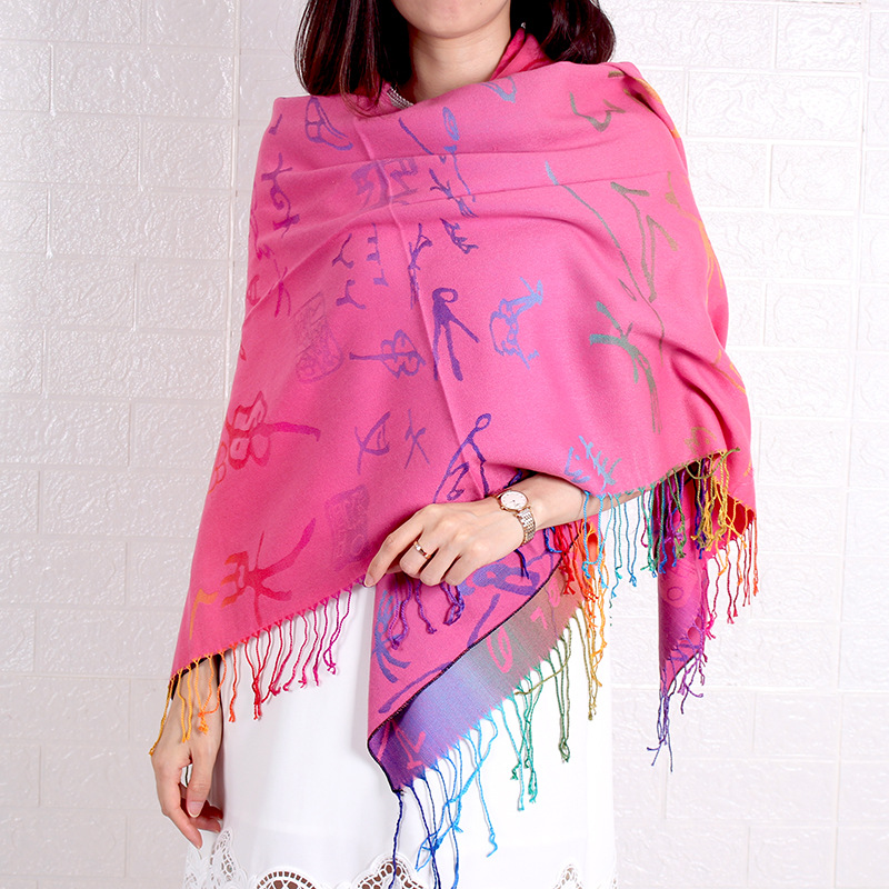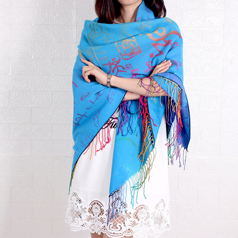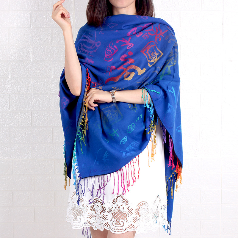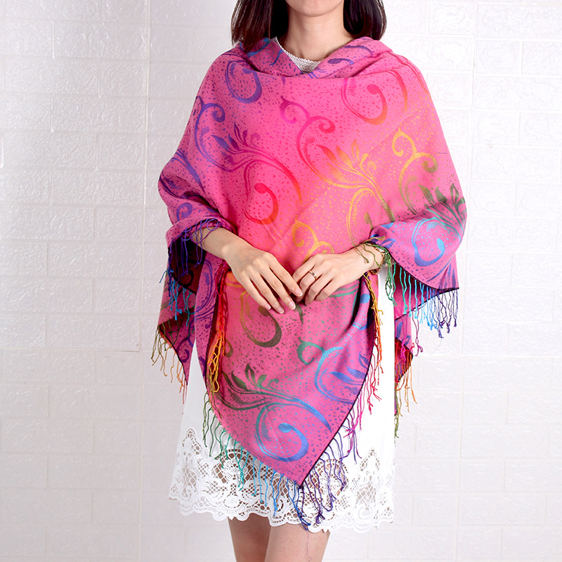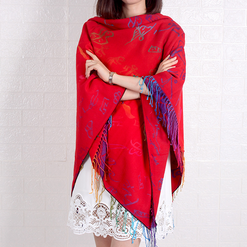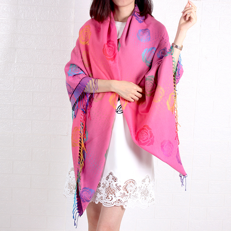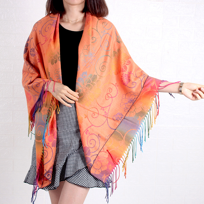 새로운 복고풍 민족 두꺼운 따뜻한 망토 꽃 스카프 캐시미어 숄 이중 목적 공작 모란 대형 광장스토어 가기