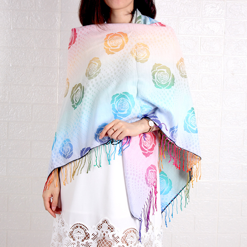 새로운 복고풍 민족 두꺼운 따뜻한 망토 꽃 스카프 캐시미어 숄 이중 목적 공작 모란 대형 광장