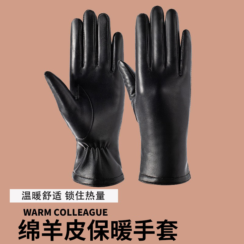 가을 겨울 여성용 천연 양가죽 장갑 방풍 보온 가죽 장갑 유럽 및 미국 스타일 운전 및 라이딩용 플러스 벨벳 길어진 장갑
