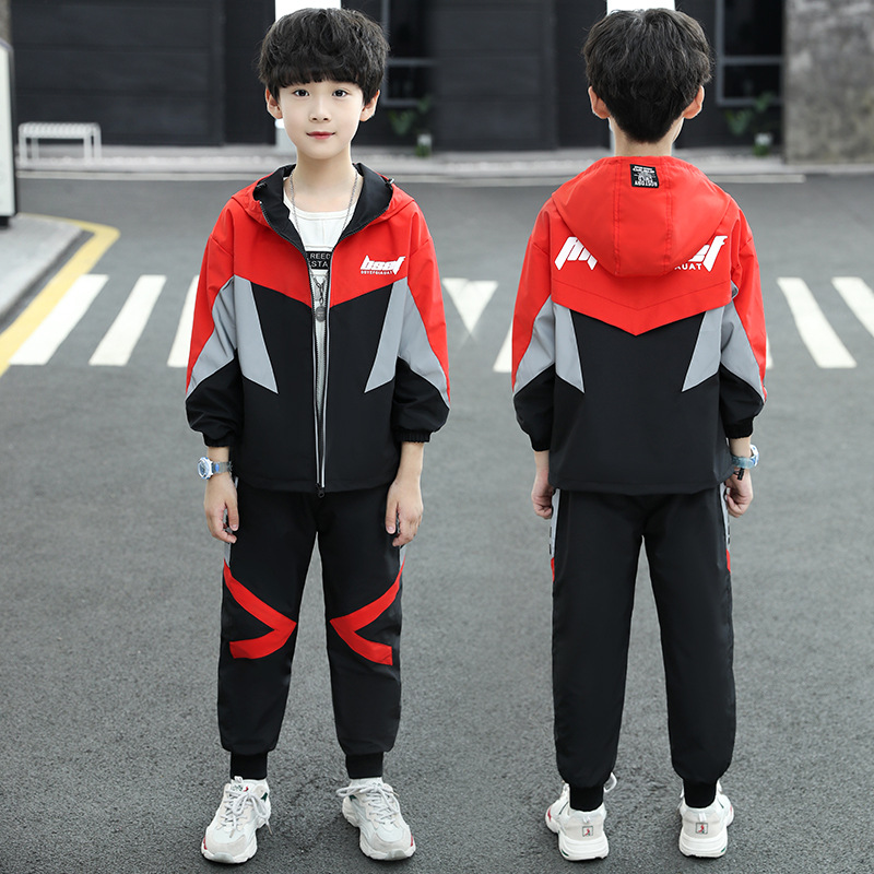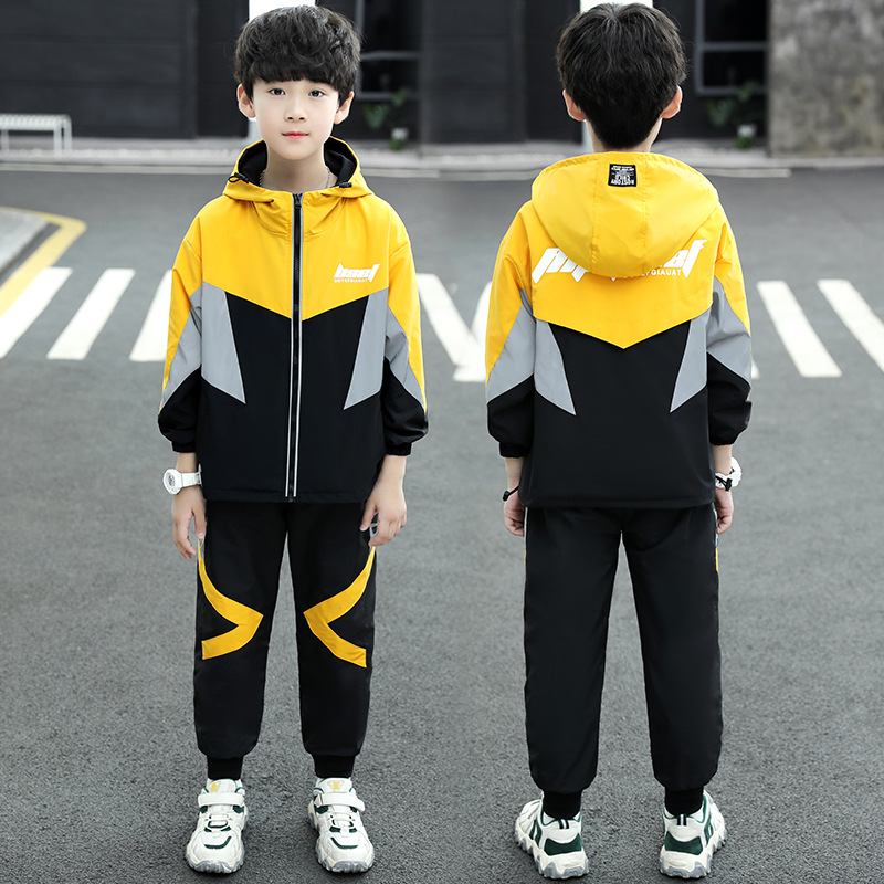 남아 가을 의류 세트 2024 신상 한국 스타일 중대형 어린이 패션 스플라이싱 투피스 세트 남아 재킷+긴바지 트렌디
