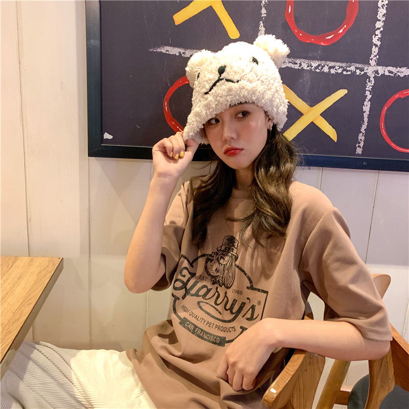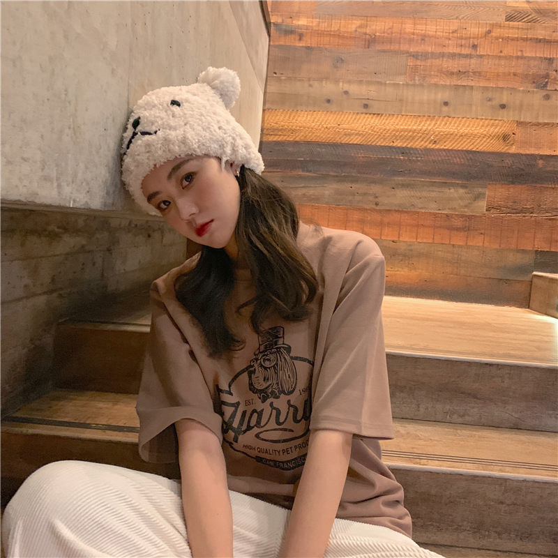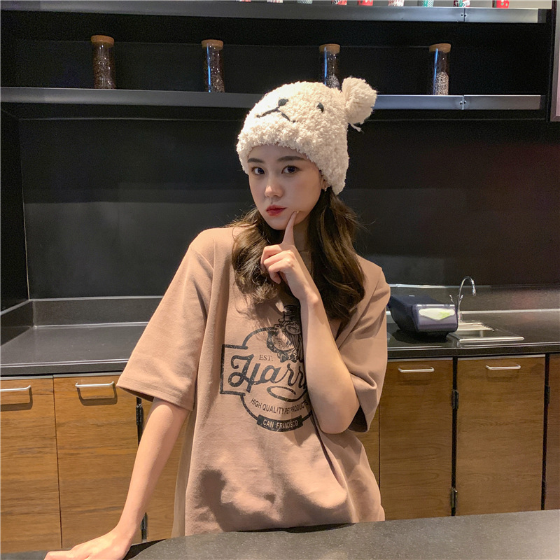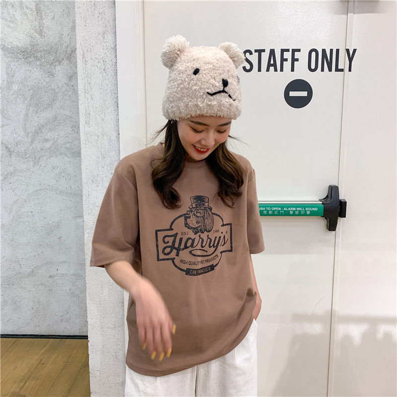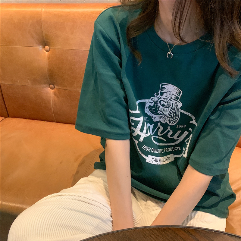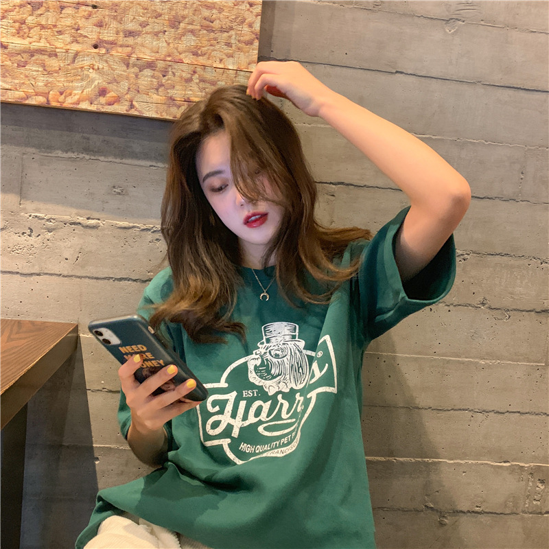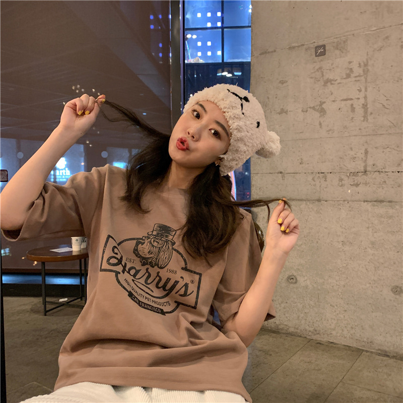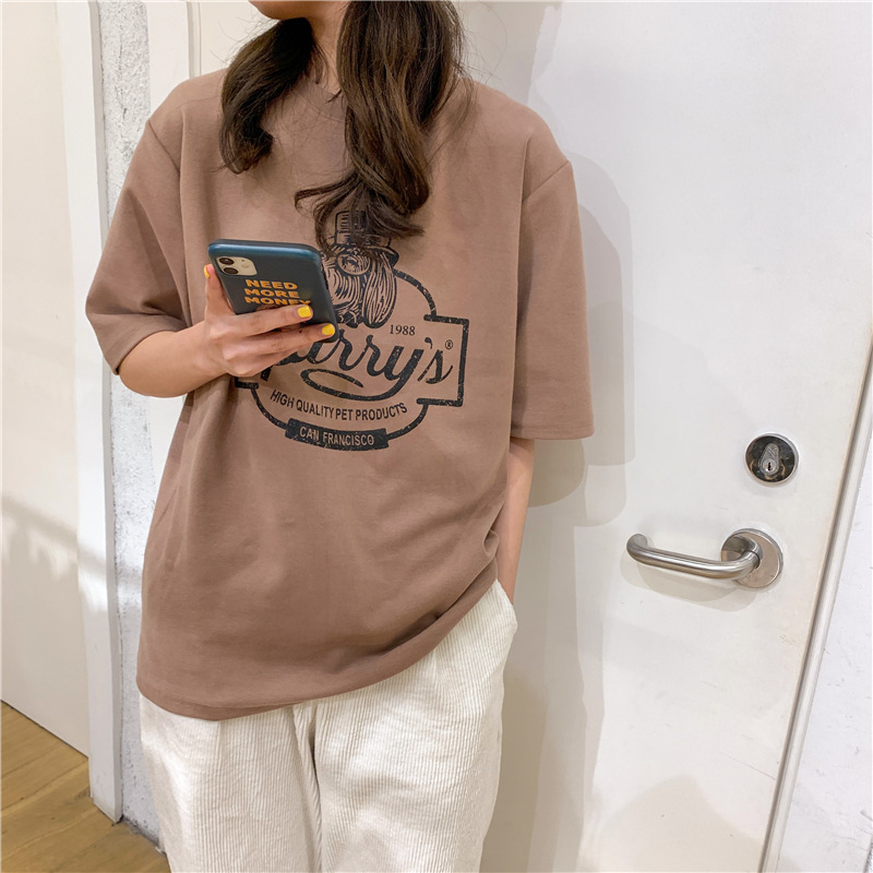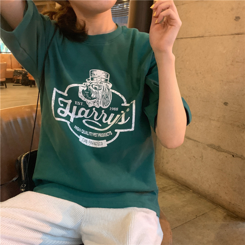 2023 여름 한국 스타일 BF 스타일 루즈한 올매치 프린트 학생 반팔 티셔츠 여성 캐주얼 홍콩 스타일 탑 인 트렌디스토어 가기