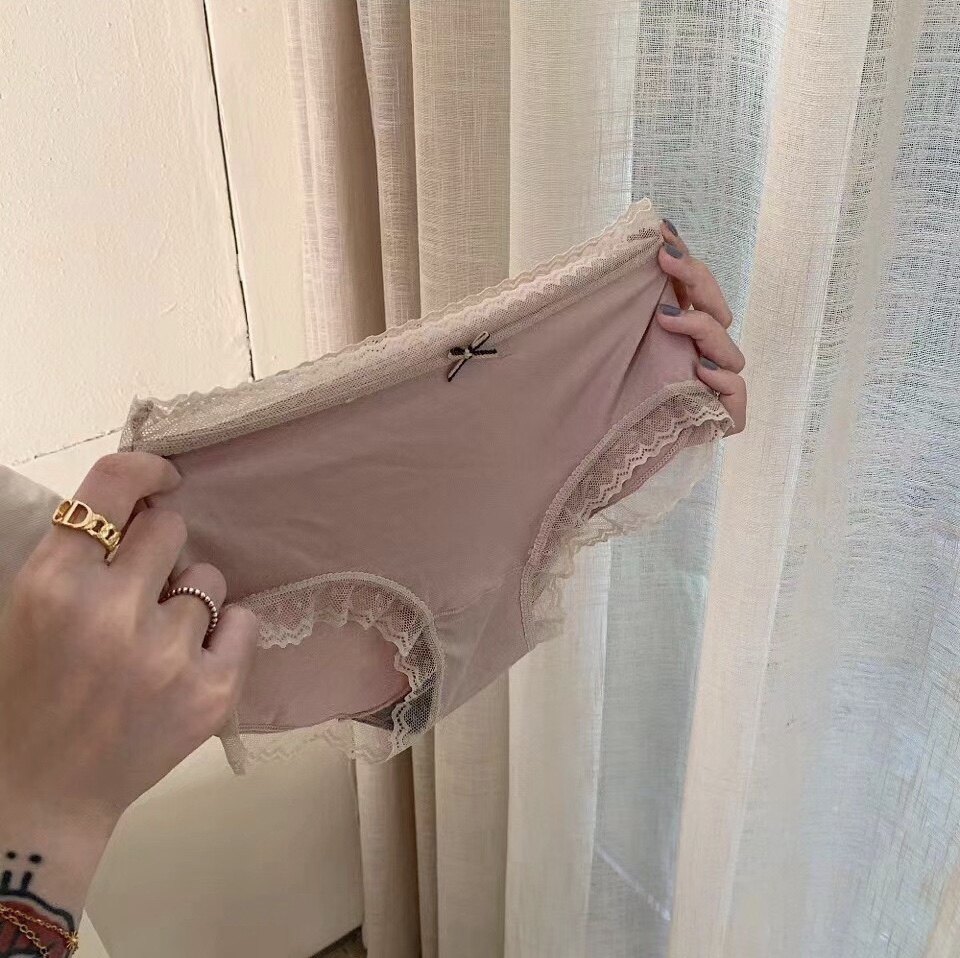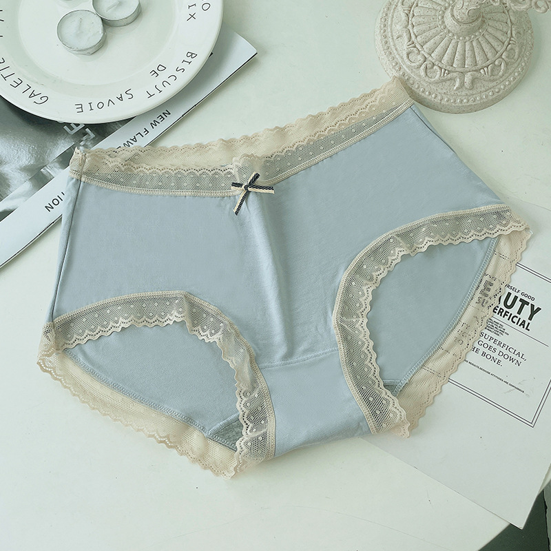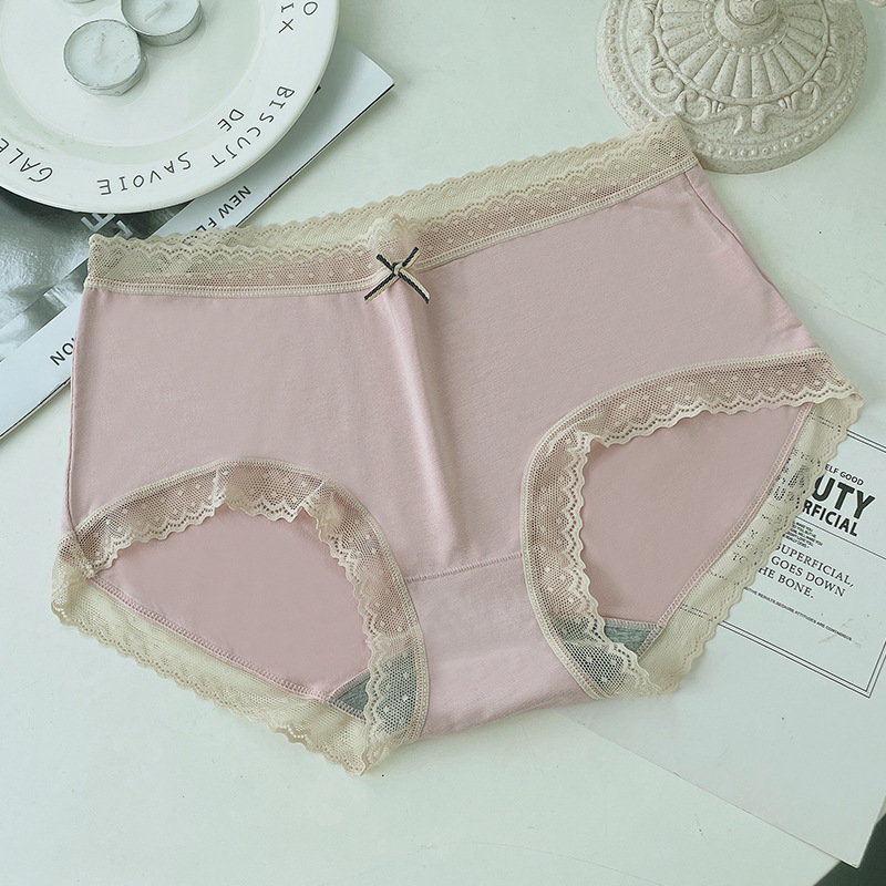 모달 속옷 모달 중간 허리 그래 핀 달콤한 소녀 활 속옷 여성용 레이스 브리프