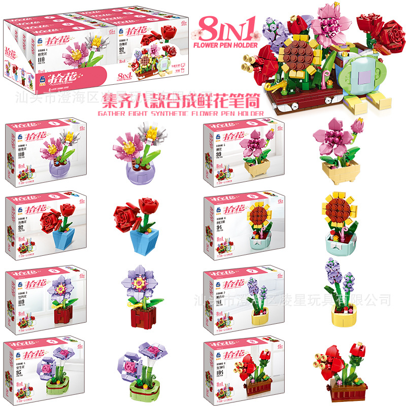 • 플라워 펜 홀더 시리즈 8 in 1-BB006 [싱글 박스 가격] 8 전 8 세트 발송
