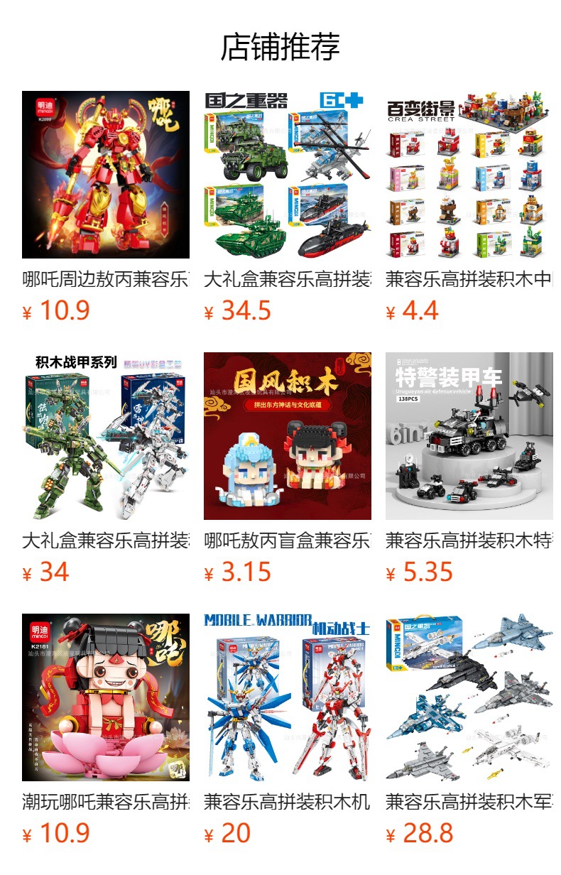 店内兼容乐高式积木款任何价位都有(礼品类、套装类、礼盒类都有)进入店铺查看价位分类即可
