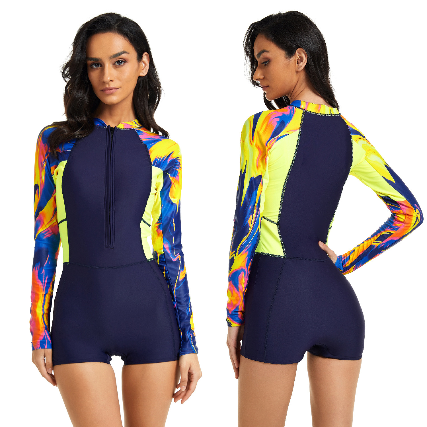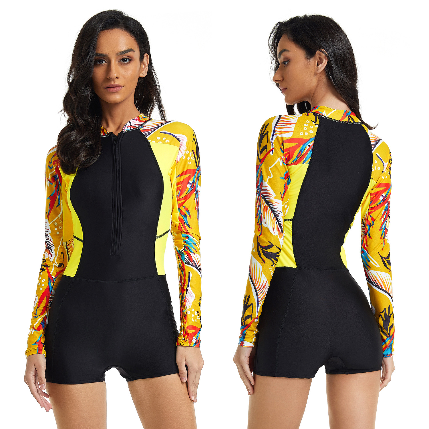유럽과 미국 대외 무역 원피스 긴팔 서핑슈트 자외선 차단제 여성용 수영복 플랫 앵글 다이빙 세트 섹시 수영복 오니 플라워 8885