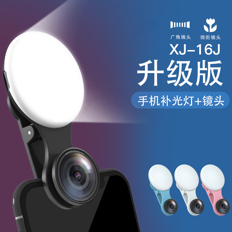 XJ16J 휴대 전화 렌즈 LED 휴대 전화 채우기 빛 유물 아름다움 셀카 빛 광각 매크로 사진 플래시스토어 가기