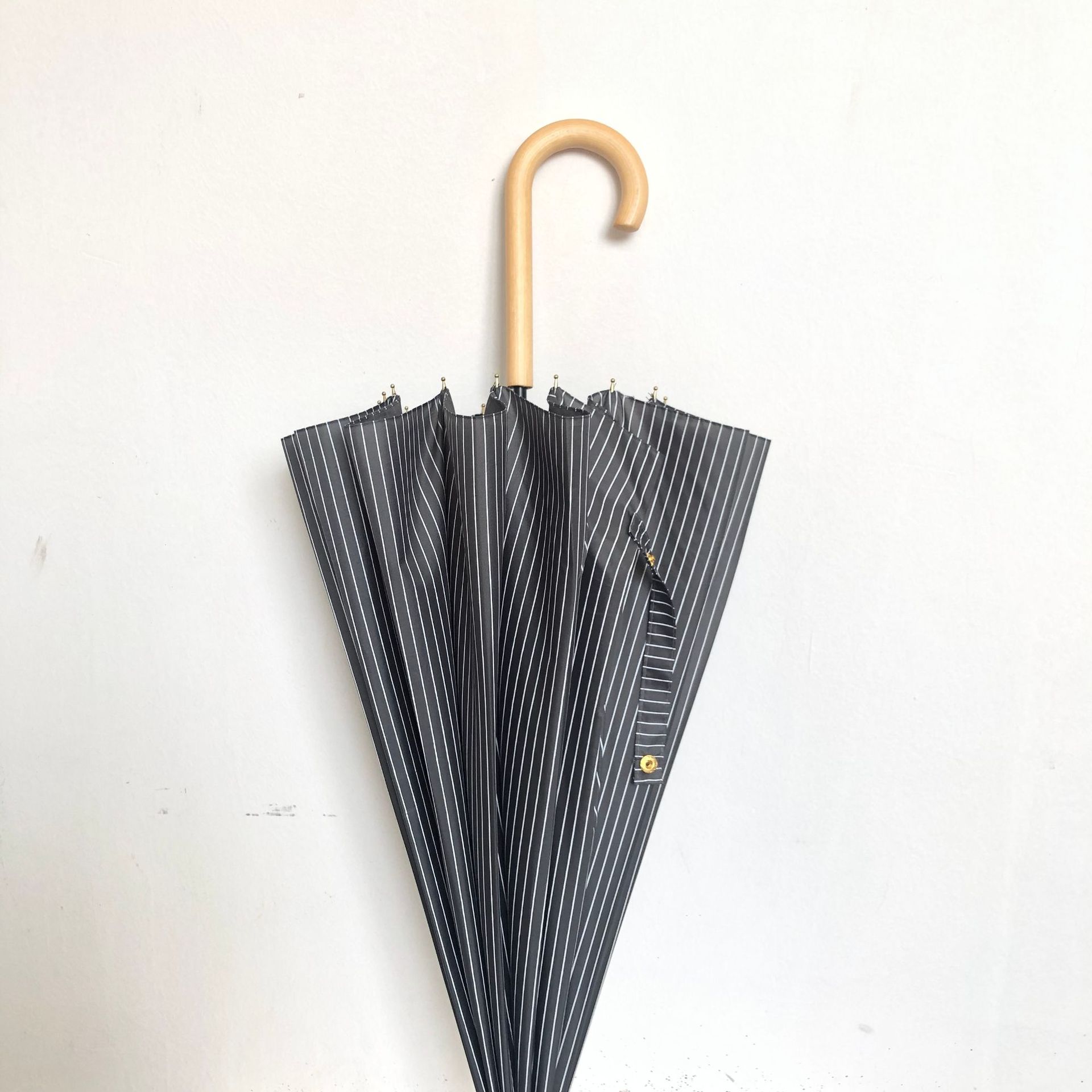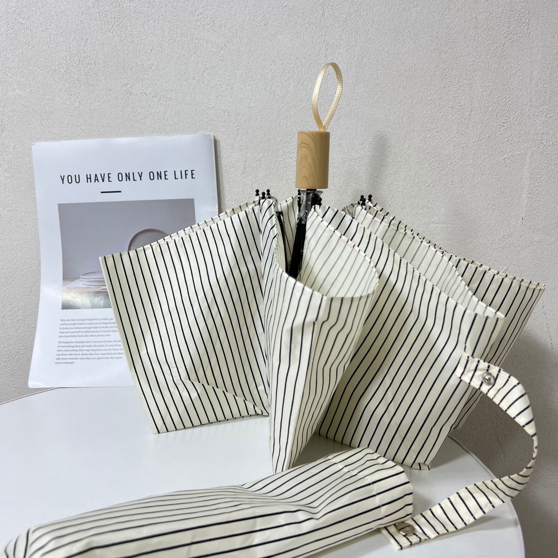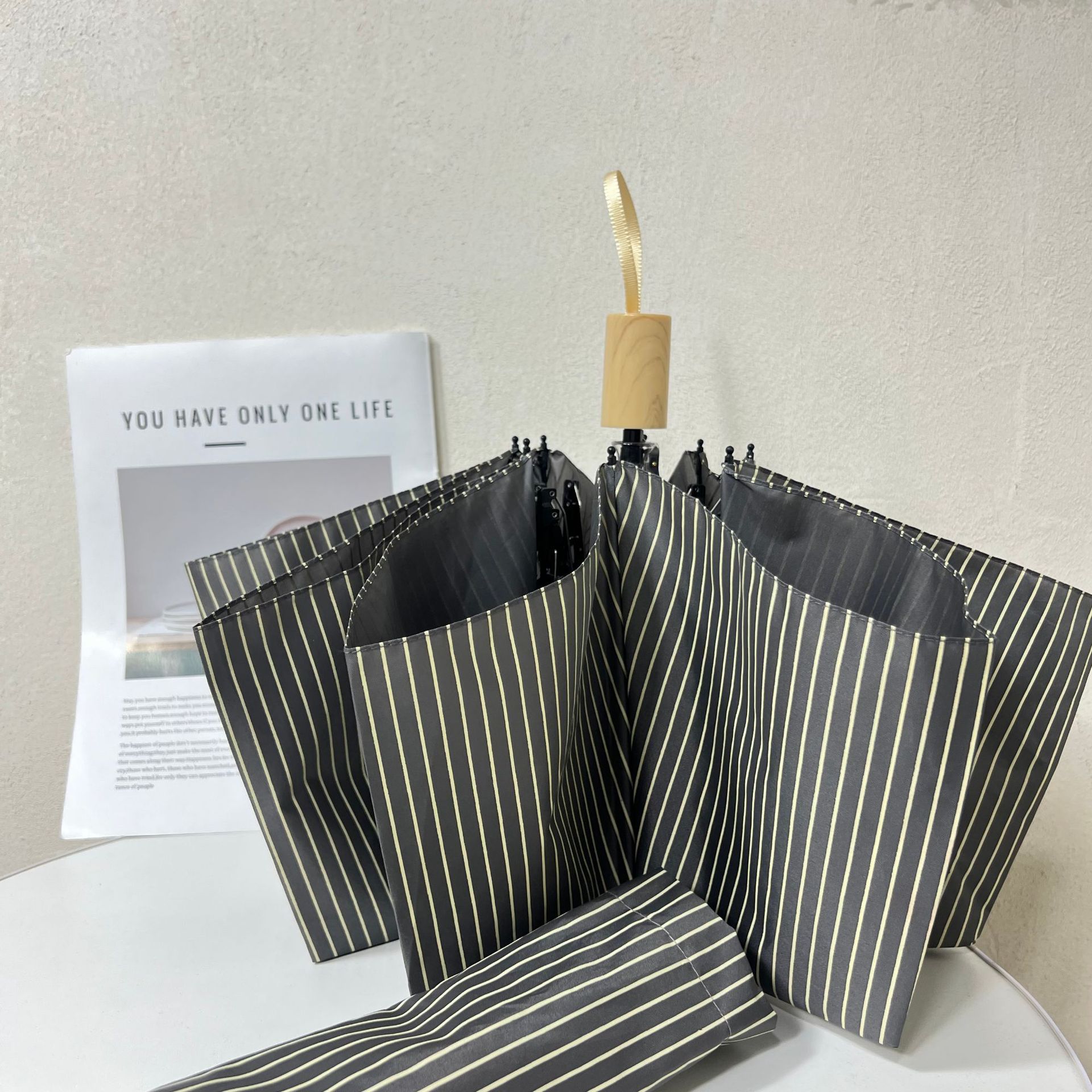 复古日系线条长柄伞直杆伞木柄16K弯钩自动雨伞定制广告伞印logo