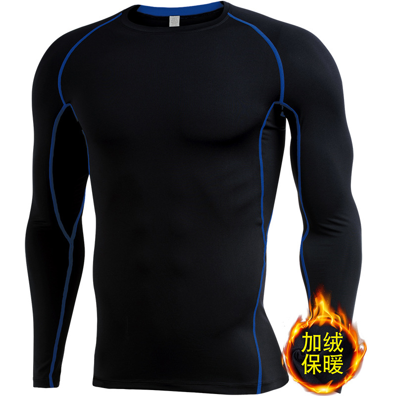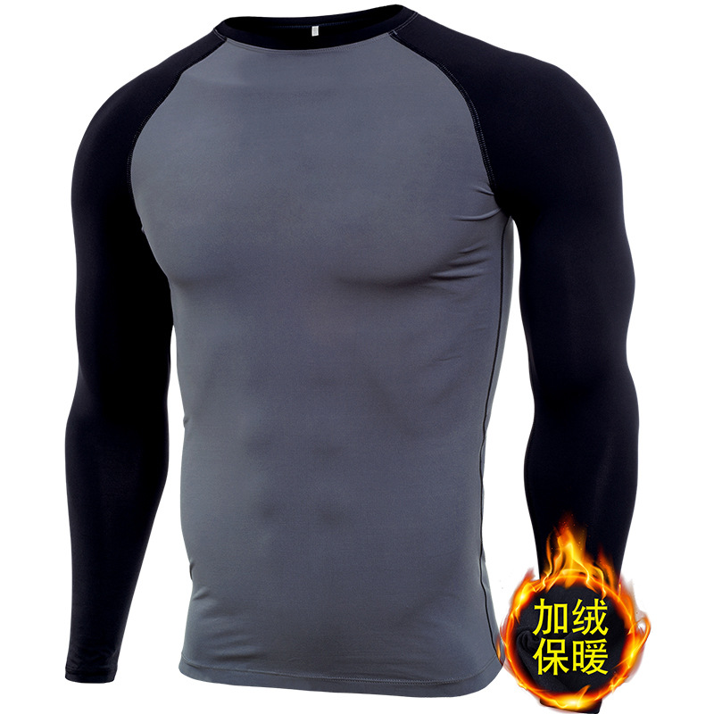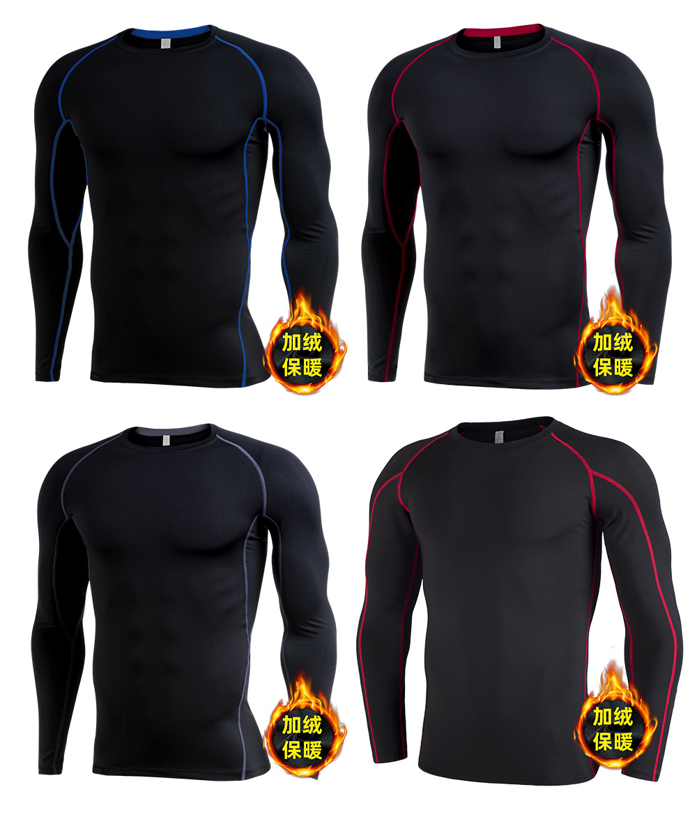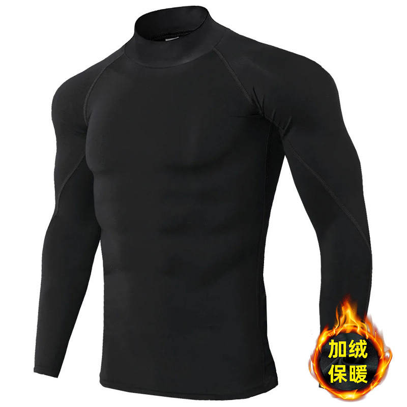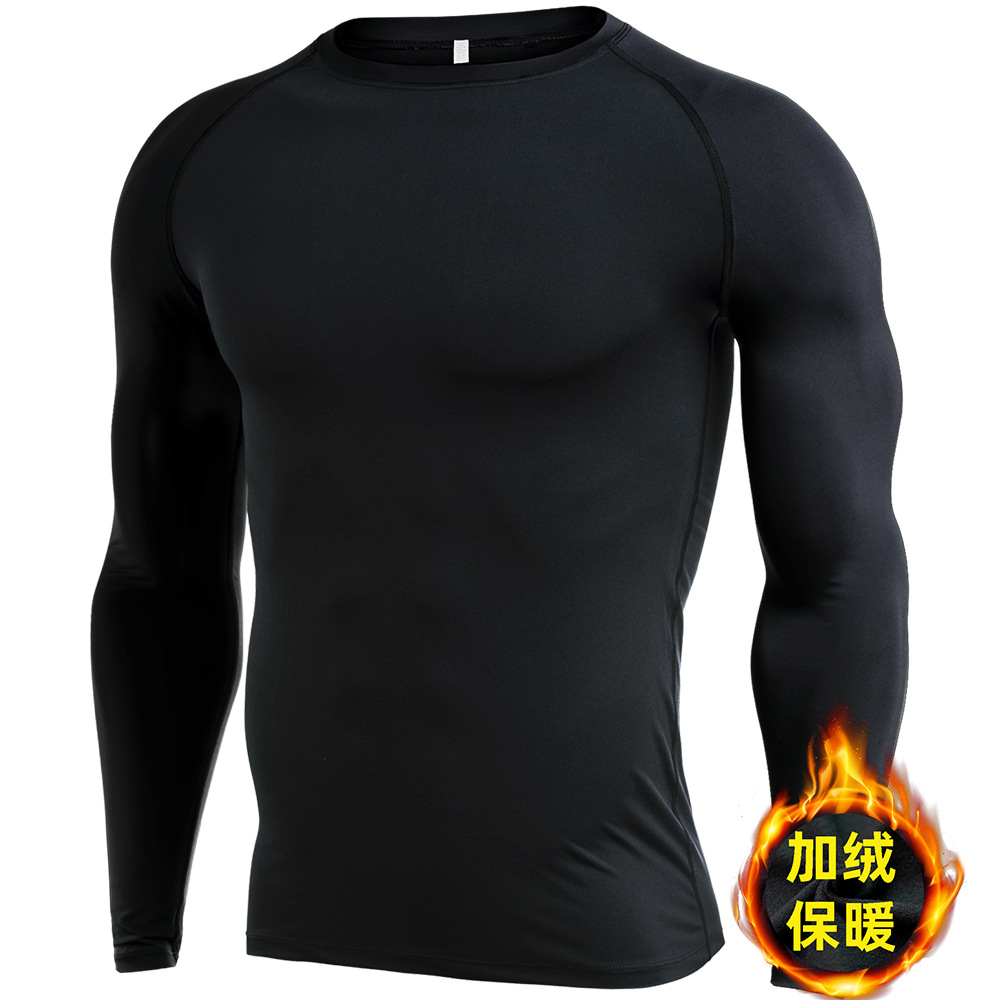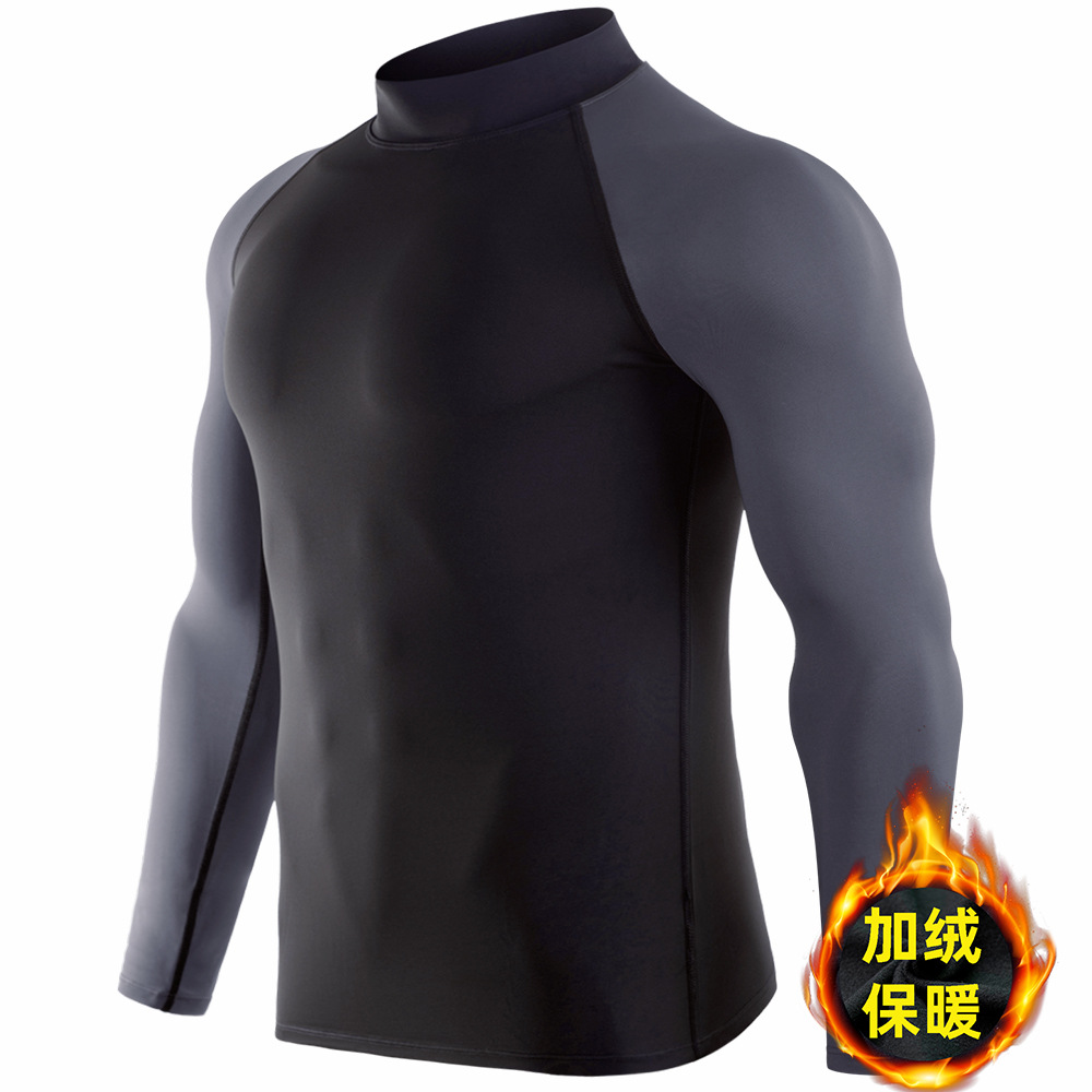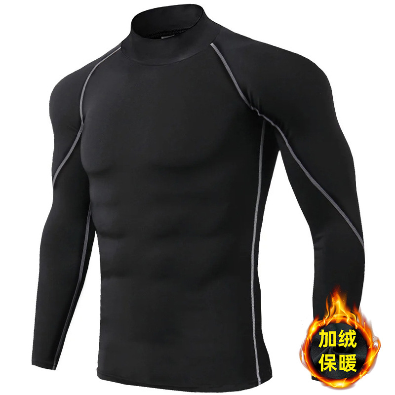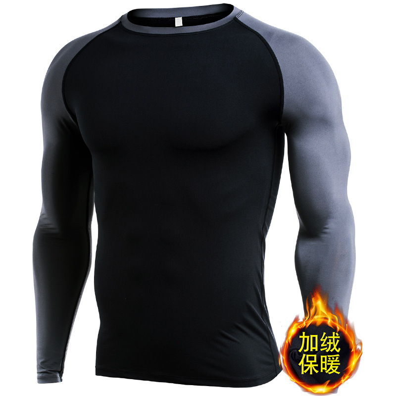 시게투 크로스보더 플리스 안감 보온 피트니스웨어 남성용 겨울 스포츠 타이트 긴팔 티셔츠 트레이닝 러닝 이너웨어