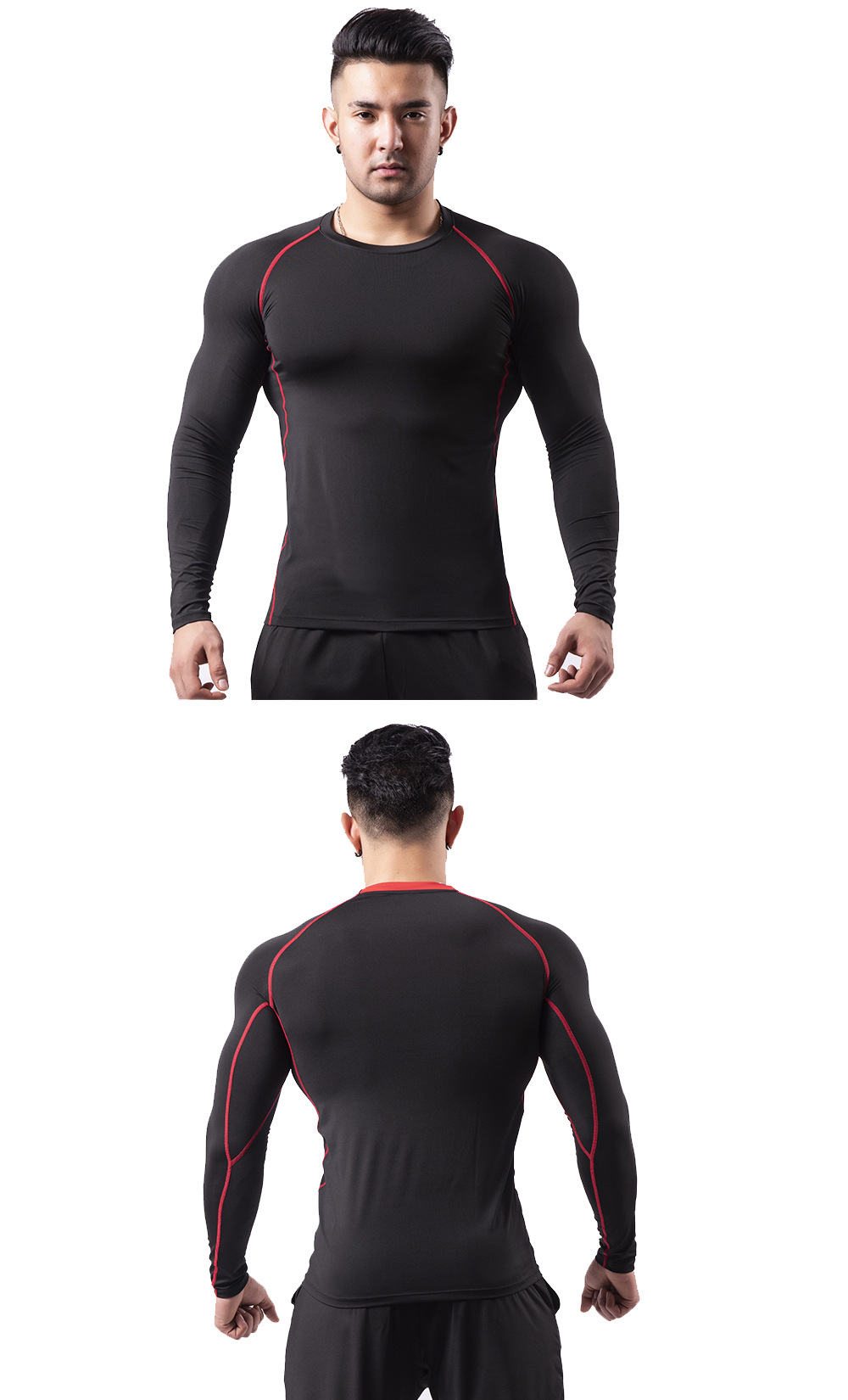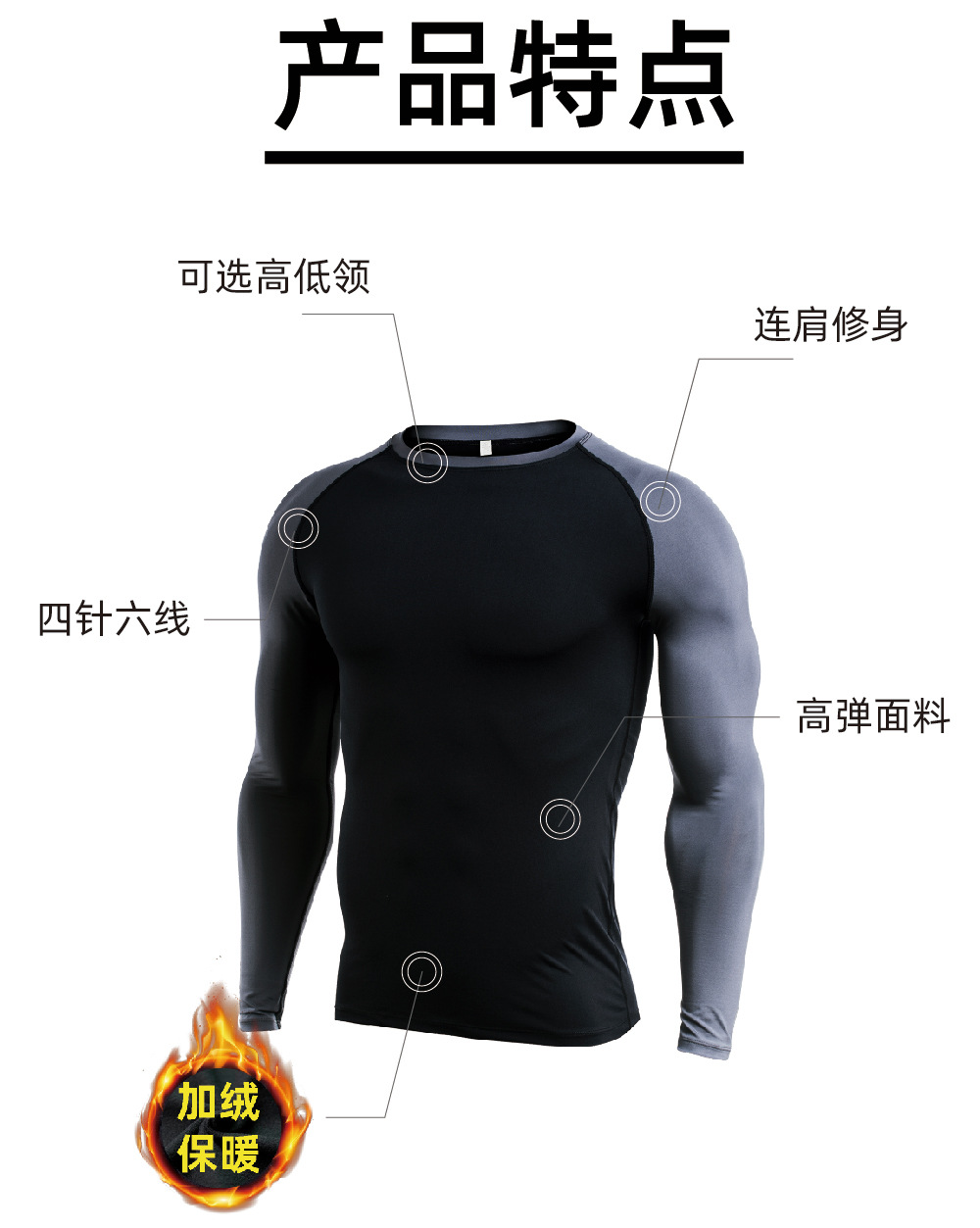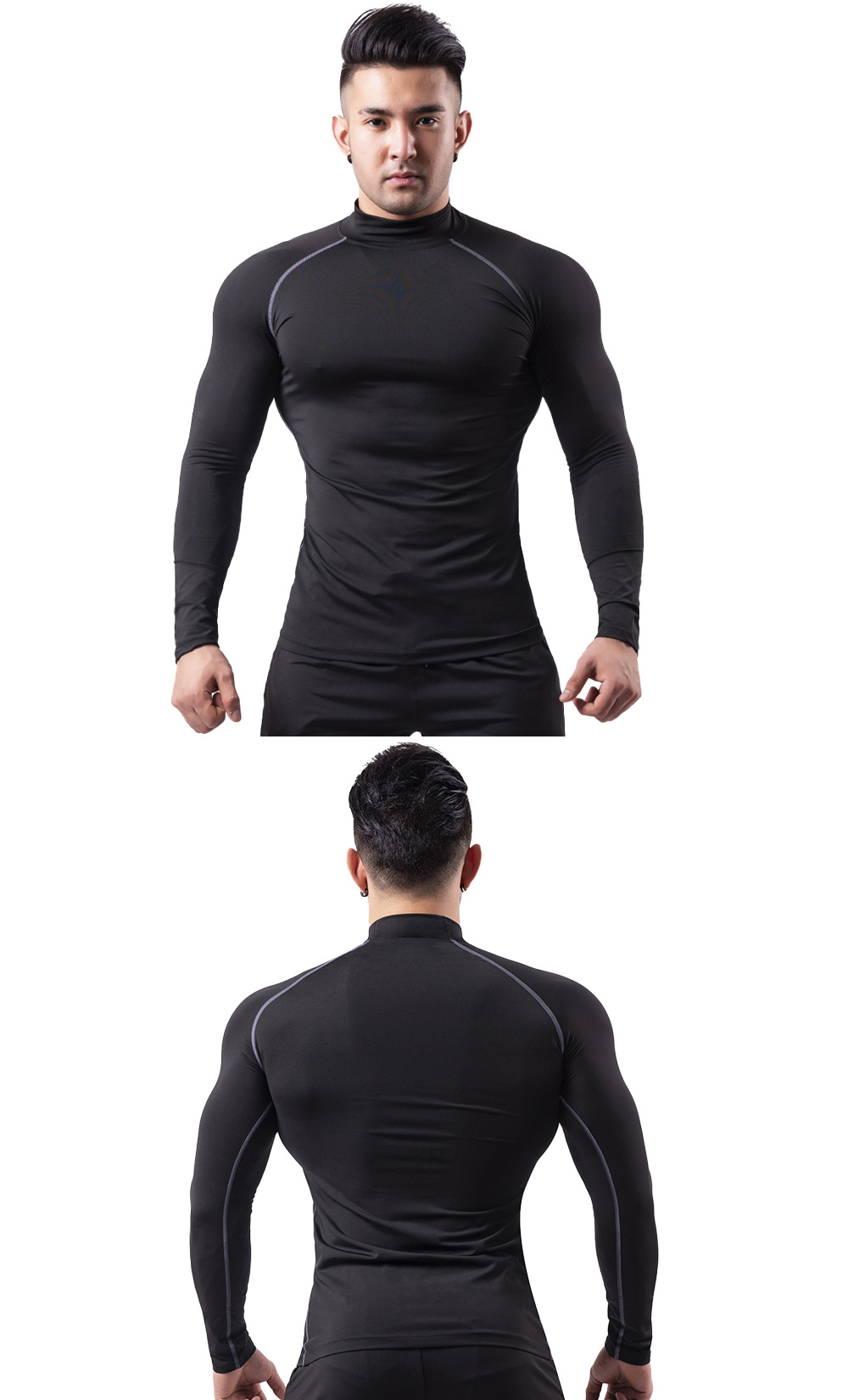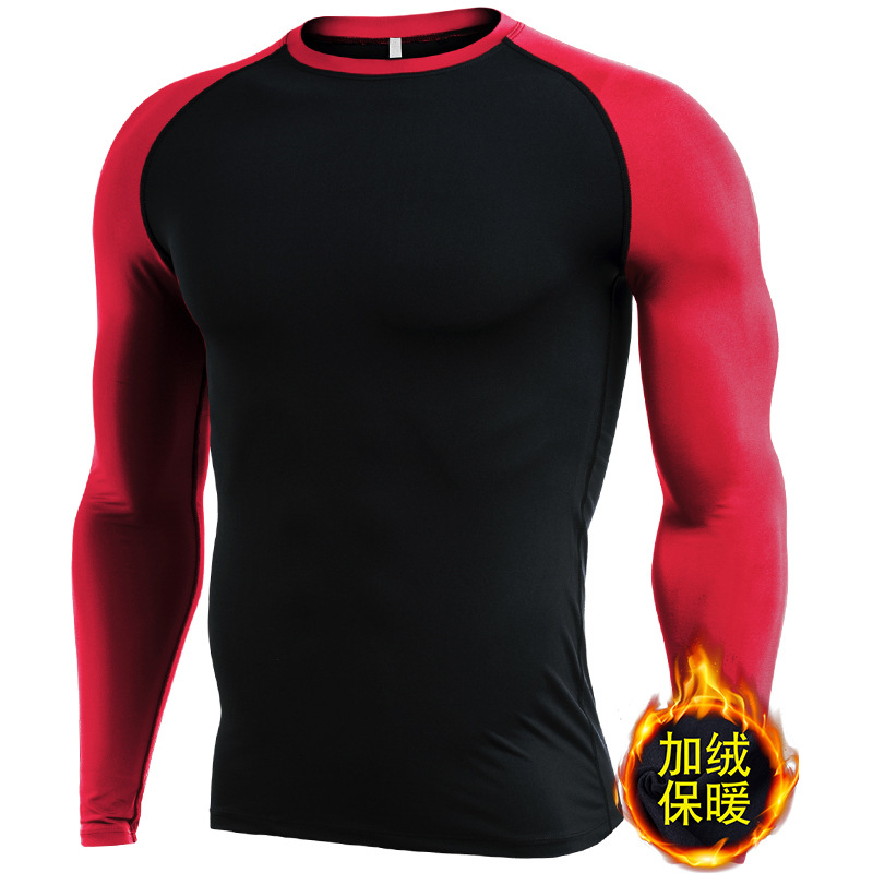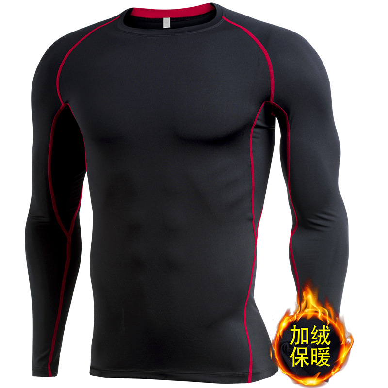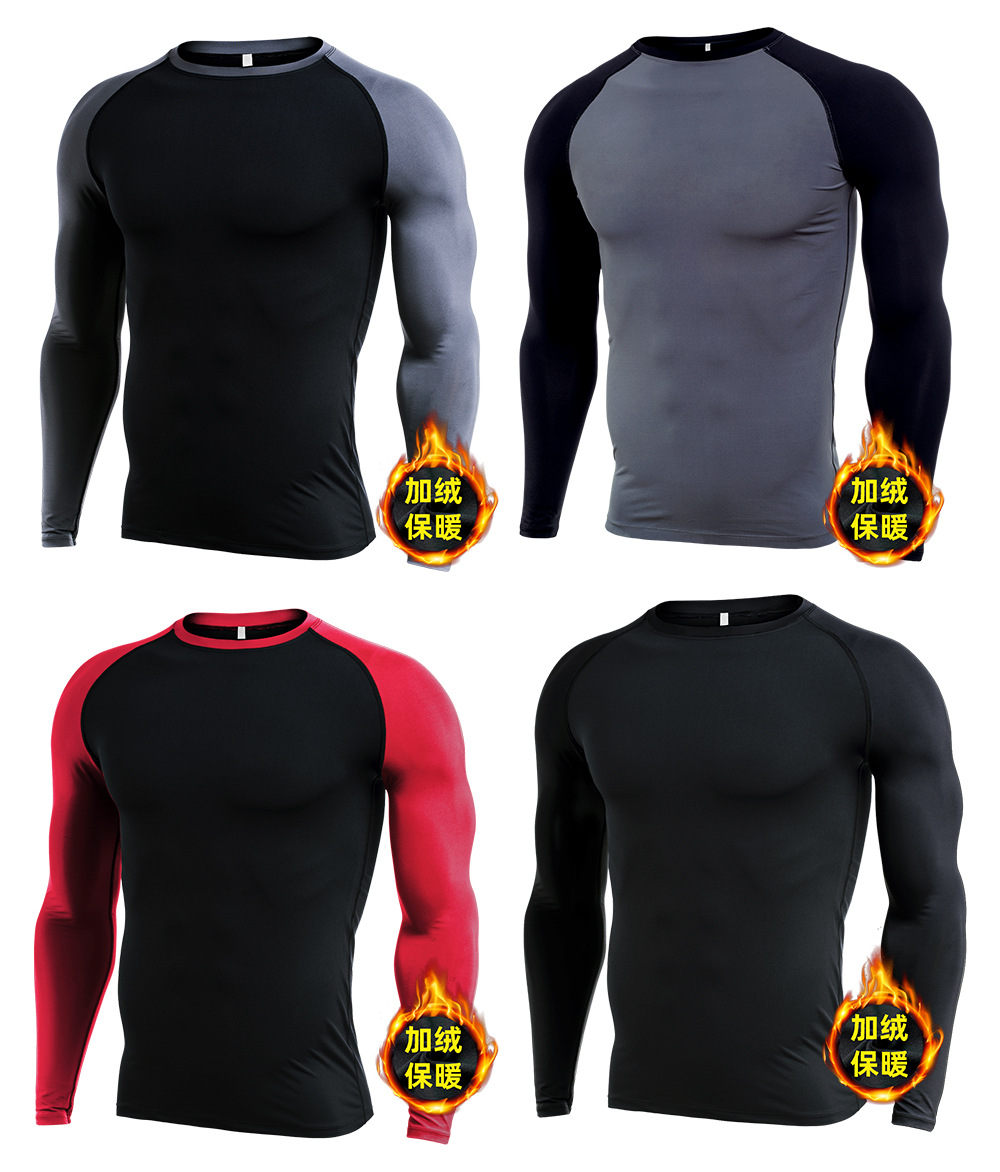 시게투 크로스보더 플리스 안감 보온 피트니스웨어 남성용 겨울 스포츠 타이트 긴팔 티셔츠 트레이닝 러닝 이너웨어