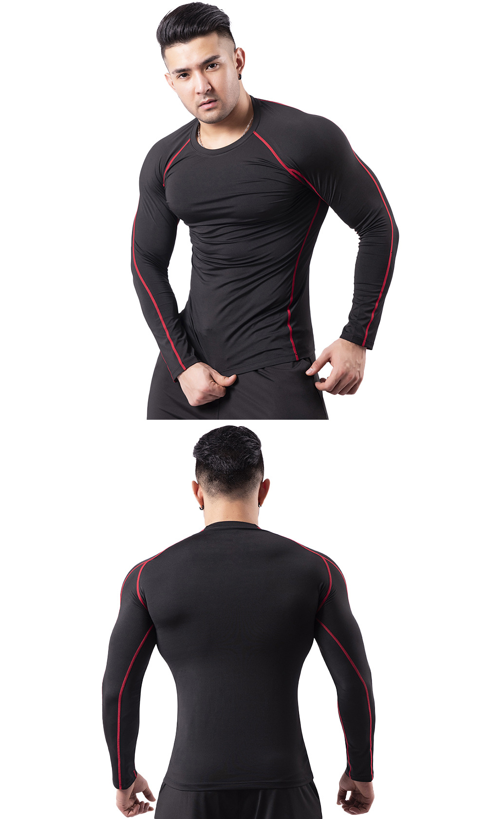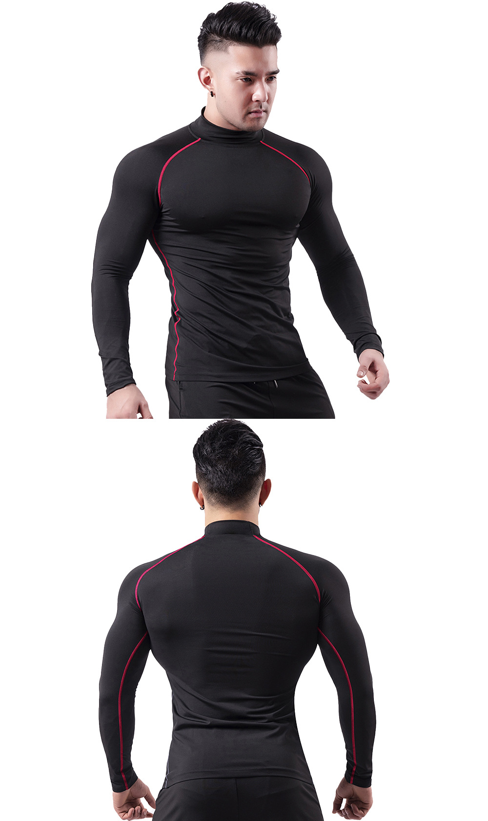 • 기모 긴 소매 1829 블랙 + 레드 라인 (하이 칼라)
