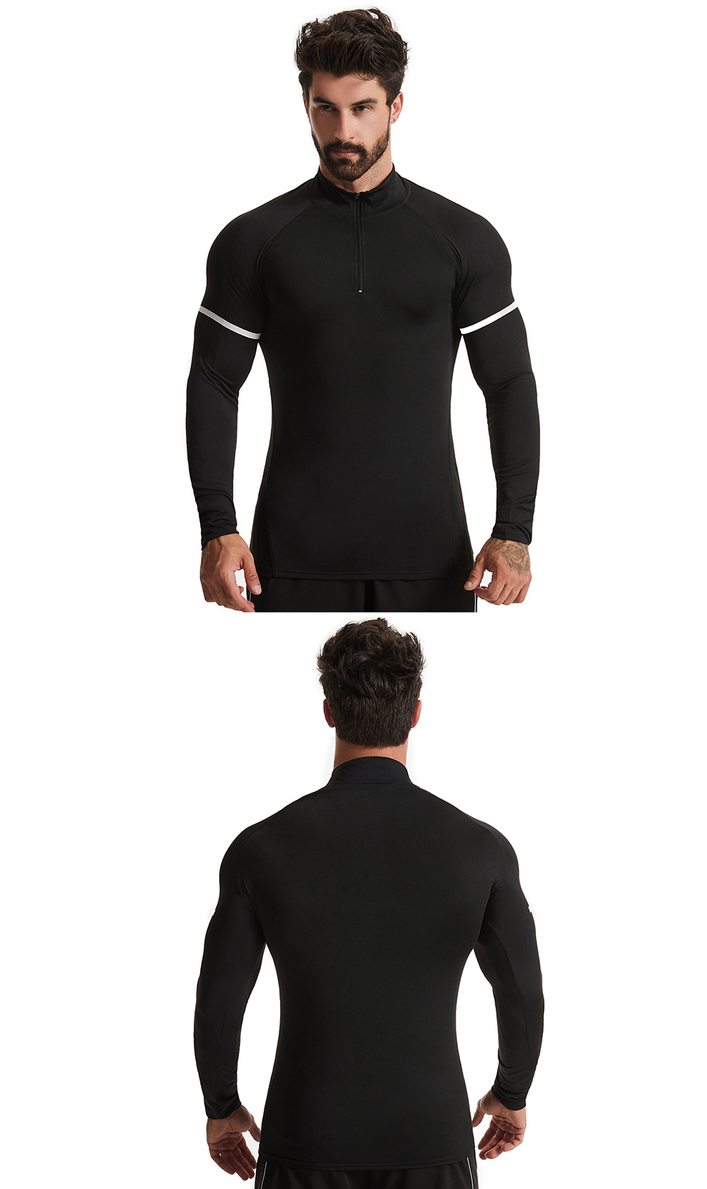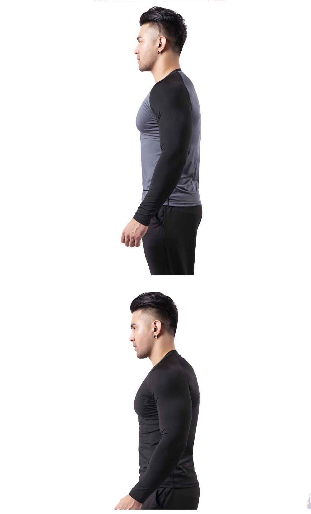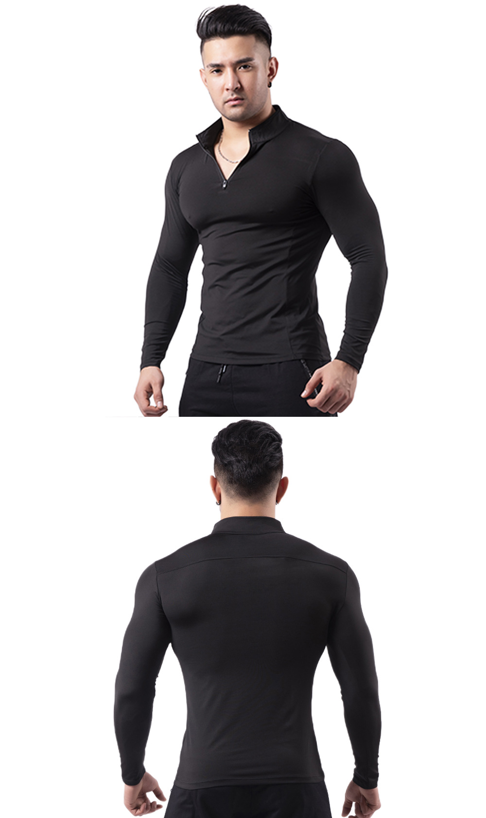 • 기모 긴 소매 1829 블랙 + 아이언 그레이 라인 (하이 칼라)