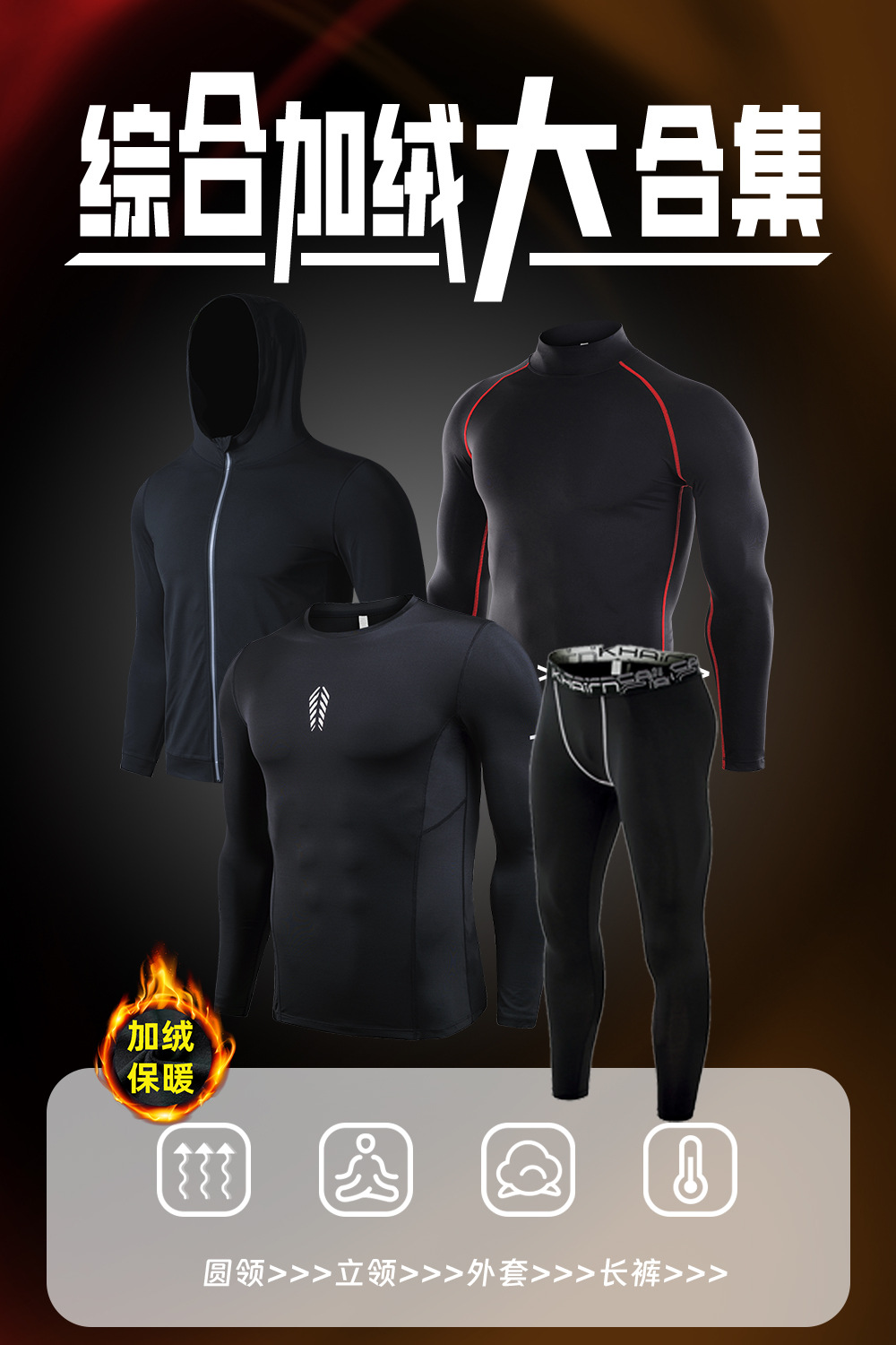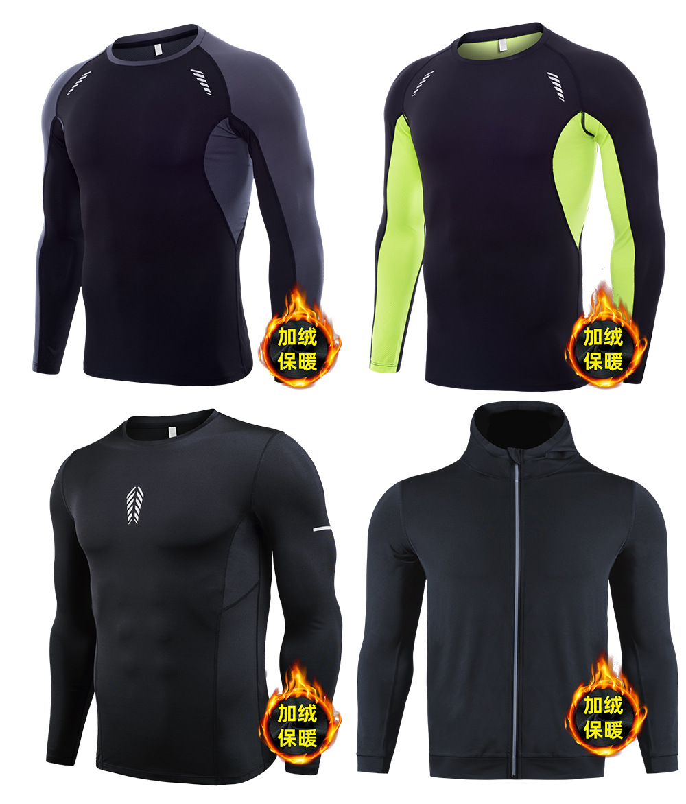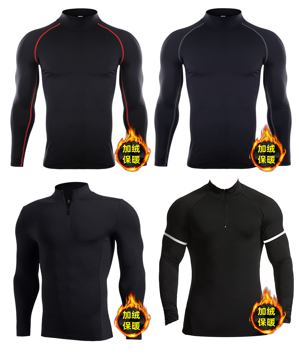 시게투 크로스보더 플리스 안감 보온 피트니스웨어 남성용 겨울 스포츠 타이트 긴팔 티셔츠 트레이닝 러닝 이너웨어스토어 가기