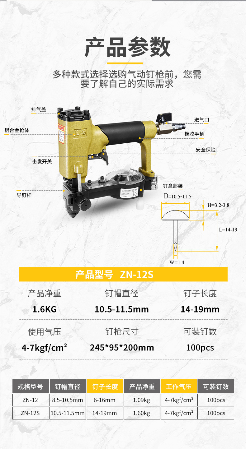 메이테 에어 스파이크 건 ZN-12 공압식 스파이크 건 자동 탄환 장전 연속 발사 모자형 스파이크 건 도매 자동 연속 발사스토어 가기