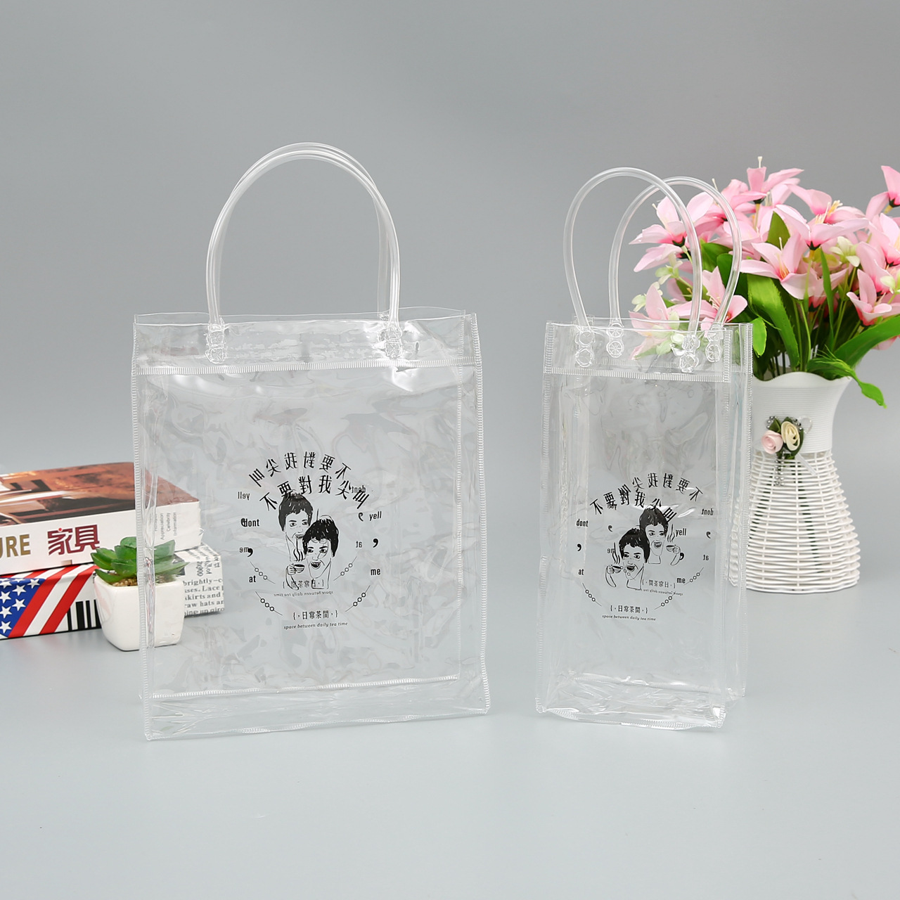 식음료 밀크티 가게 테이크아웃 포장용 PVC 핸드백 제조업체 맞춤형 투명 핸드백 PVC 투명 선물 가방스토어 가기