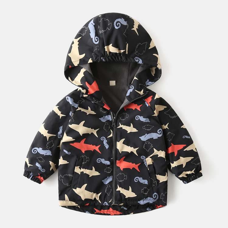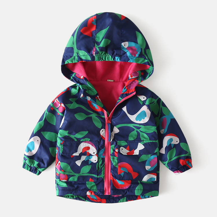 20 새로운 가을과 겨울 소녀 만화 인쇄 기모 윈드 브레이커 아동 폭행 옷 긴 방풍 코트 한 장스토어 가기