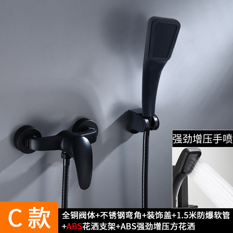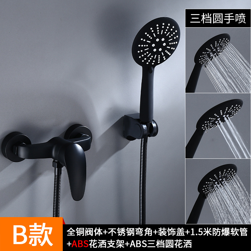 블랙 샤워 세트 가정용 욕실 샤워 모든 구리 간단한 벽걸이 샤워 헤드스토어 가기