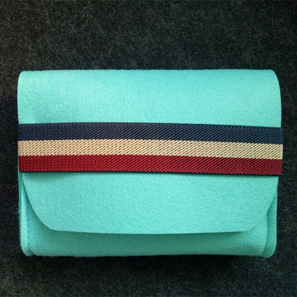 产品特点:毛毡有防水,保暖,疏松缓冲等特点。用来制成毛毡包不仅时尚而且使用。毛毡的特点就是可回收性,且本身非常环保。毛毡柔软温暖的质感,受到越来越多人的青睐,而这一次,人们不仅关注它的实用价值,更格外关注它的美丽,被重新拾起的毛毡表现出超乎我们想象的精彩。
