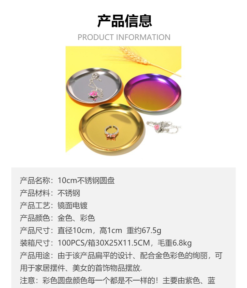 제조 업체 도매 스테인레스 스틸 보석 보관 플레이트 금속 보석 링 플레이트 10cm 디스크 보석 플레이트스토어 가기