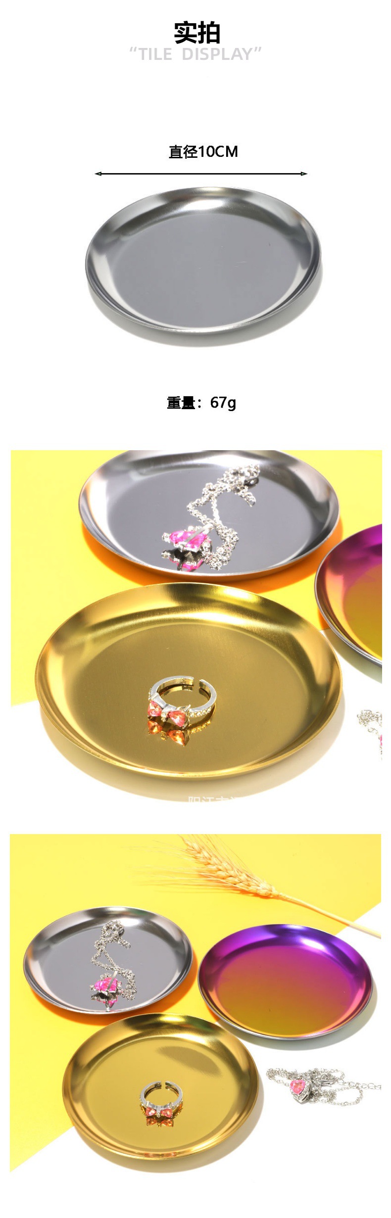 제조 업체 도매 스테인레스 스틸 보석 보관 플레이트 금속 보석 링 플레이트 10cm 디스크 보석 플레이트