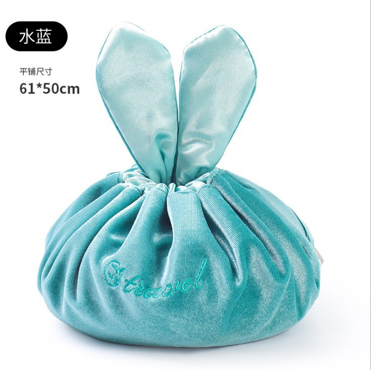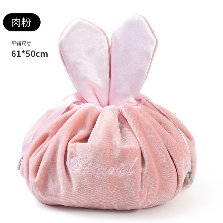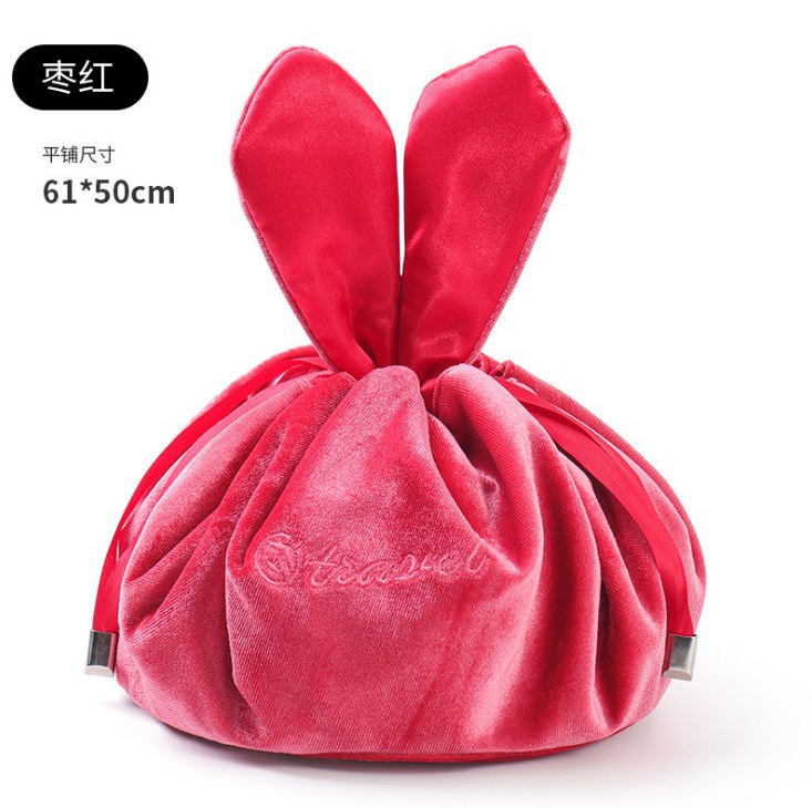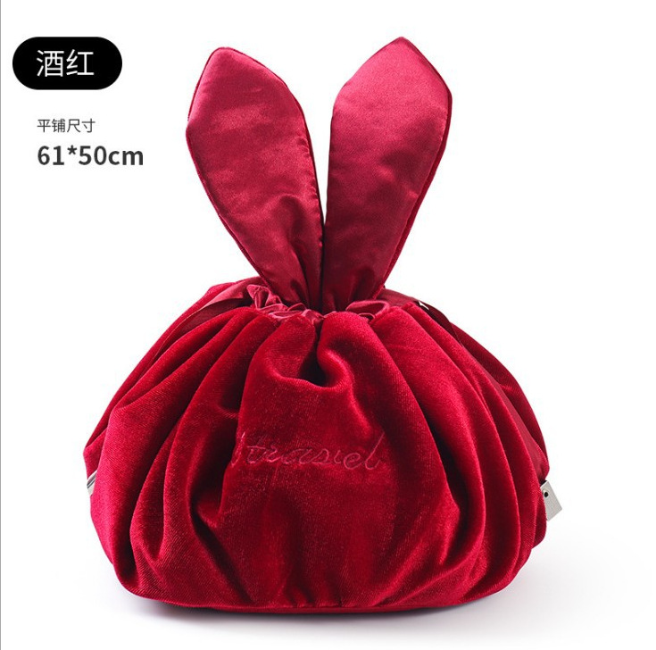 새로운 게으른 화장품 가방 손을 들고 토끼 귀 벨벳 화장품 보관 가방 여행 휴대용 서랍 세탁 가방