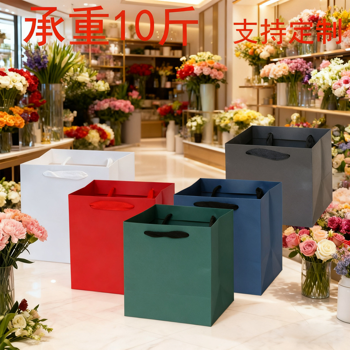 케이크 가게 포장 가방 사각 크래프트 종이 선물 가방 테이크 아웃 핸드백 종이 가방 대형 꽃 포장 가방 재고