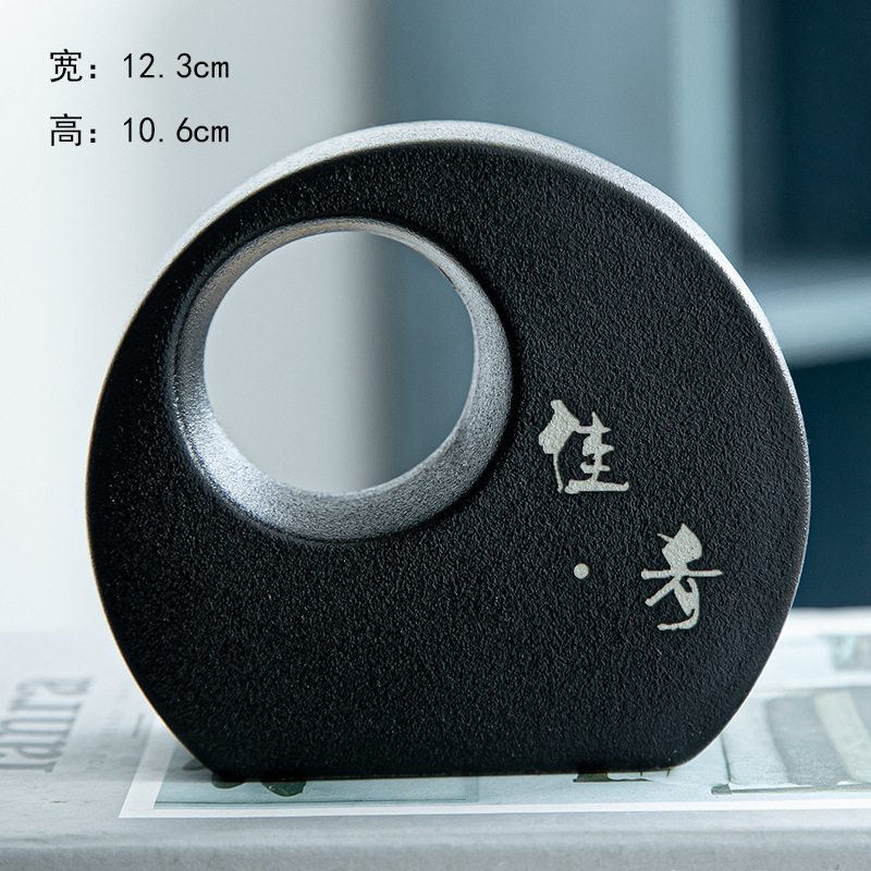 꽃병 세라믹 호텔 용품 데스크탑 디너 플레이트 장식 검은 도자기 로보 꽃기구 레이저 조각 장식품