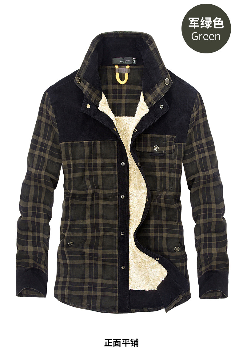 秋冬新款衬衫男士加绒长袖格子加厚保暖羊羔绒开衫男装衬衣13136