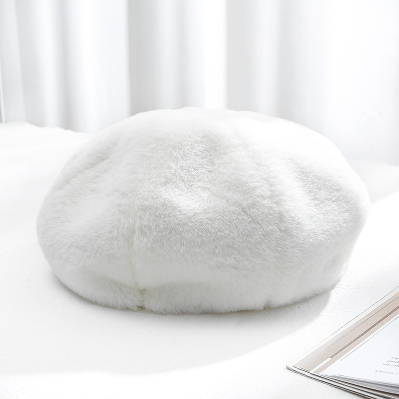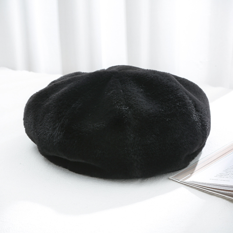 가을 겨울 베레모 여성용 모자 한국 스타일 플러시 따뜻한 패션 레트로 영국 화가 모자 다용도 인조 토끼털