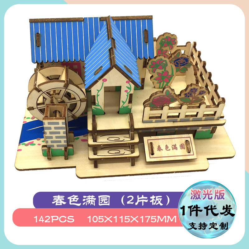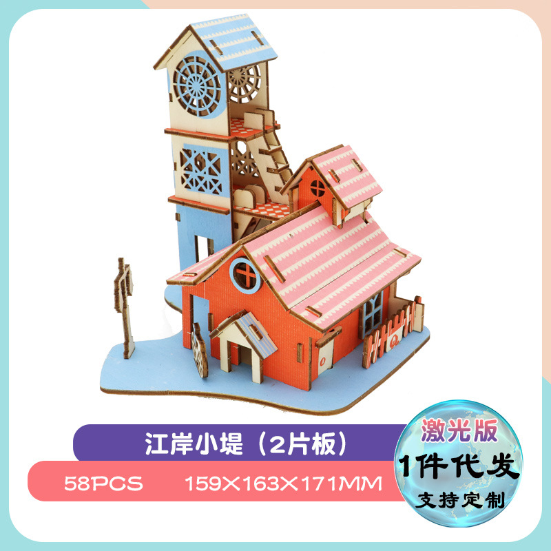 마구간 입체 퍼즐 목조 조립 3D 목조 건물 모델 수제 목조 주택 DIY 교육 완구 도매